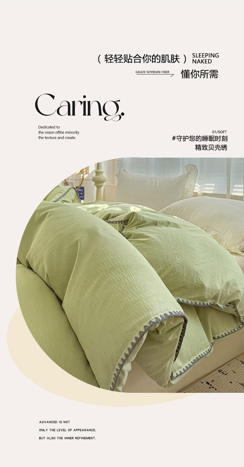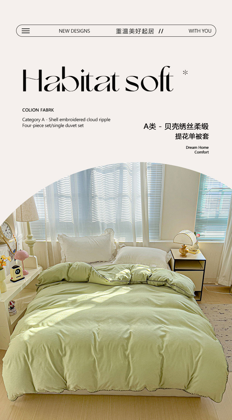 卡普二店 2025新款A类轻奢贝壳绣丝柔缎提花被套 丝柔缎-黄绿