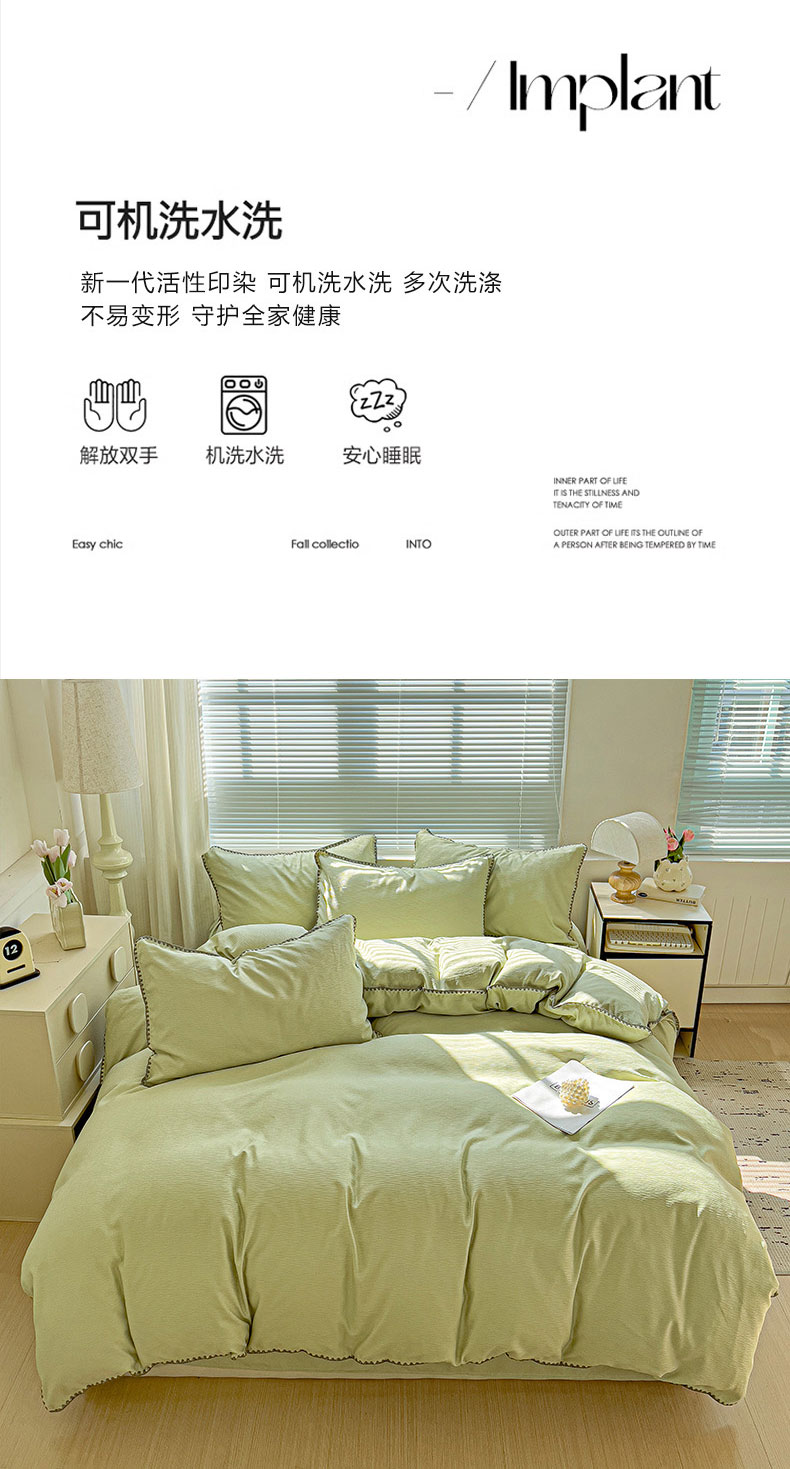 商品名称:卡普二店 2025新款A类轻奢贝壳绣丝柔缎提花被套 丝柔缎-黄绿