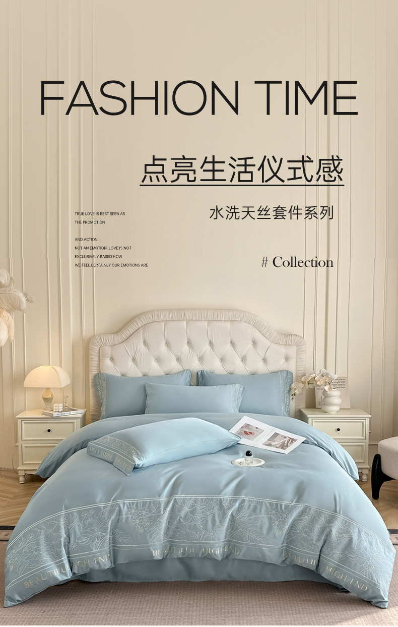 当前位置: 91家纺网 > 商品网购 > 床品套件 > 四件套 > 水洗真丝四件套 > 绒掌柜 2025新品第一波 水洗天丝真丝冰丝四件套(礼盒装含买家秀)—清悦系列 天水蓝