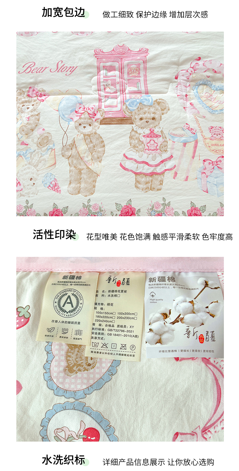 商品名称:2025新款A类印花手包边凌香新疆棉花夏被 凌香泰迪熊