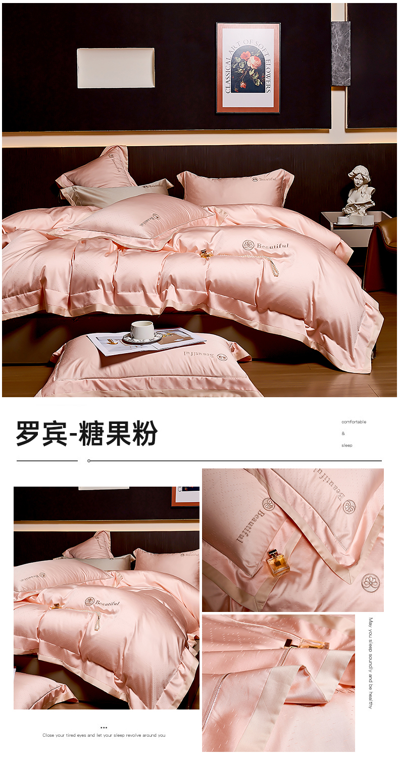 U品汇 2025新款60支双股120s天丝棉提花莱赛尔纤维刺绣花四件套纯棉全棉凉感丝滑(罗宾) 罗宾-糖果粉