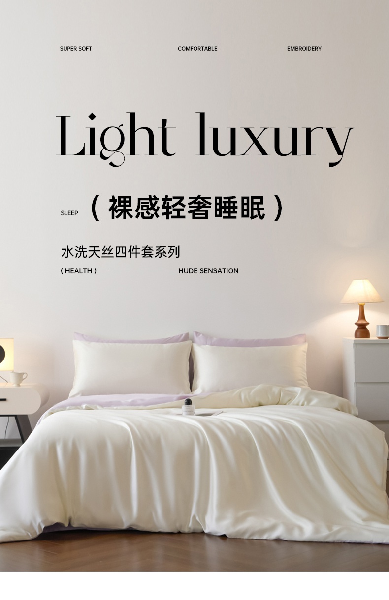 当前位置: 91家纺网 > 商品网购 > 床品套件 > 四件套 > 其它四件套 > 利欧 2025新款双拼水洗天丝四件套 双拼-淡紫+米黄