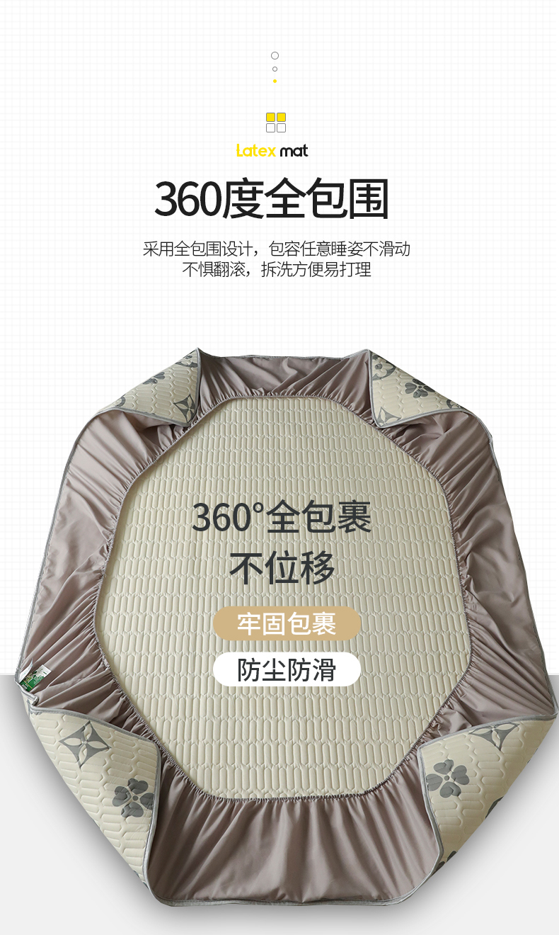 圣比熊 2025新款大版印花纯色0.5乳胶凉席床笠款床裙款凉席三件套 床单款-潮流熊