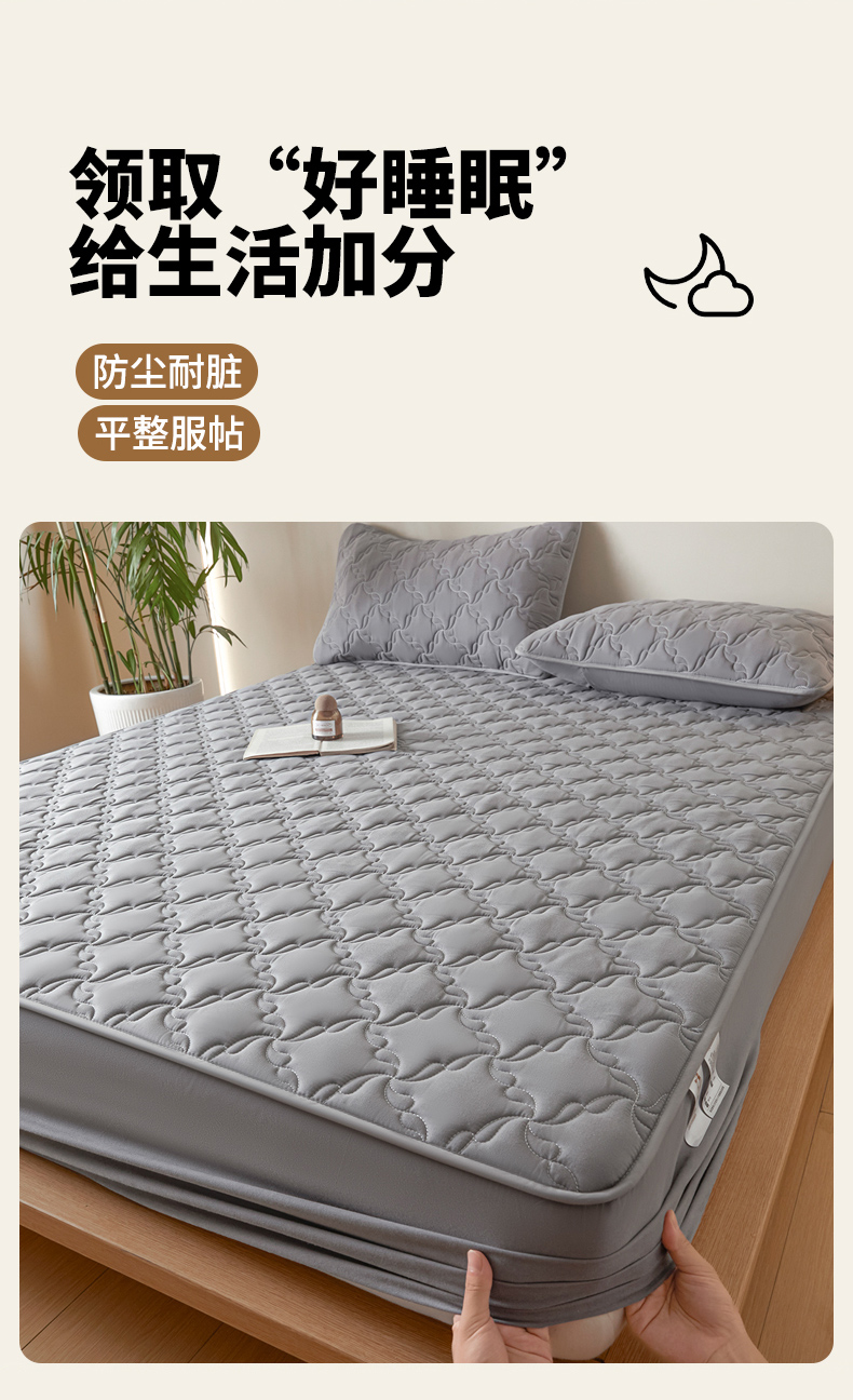 (总)雪云美2025新款A类全棉色织水洗棉夹棉床笠大豆床罩床垫保护套可定制,江南 灰,绿紫格,莫尼 粉,莫尼 蓝,莫尼 绿,沐妍 黄,拿铁 灰,山脉 兰,英伦 粉
