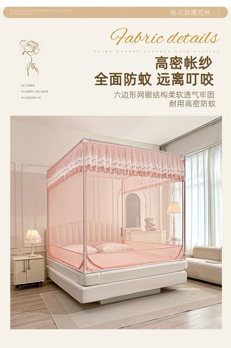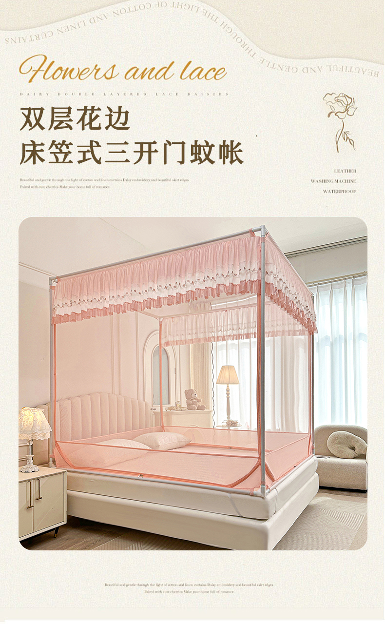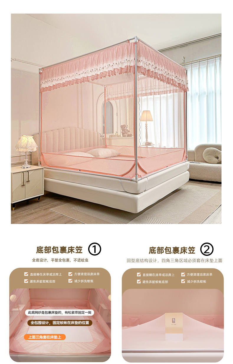 当前位置: 91家纺网 > 商品网购 > 床上用品 > 蚊帐 > 坐床式蚊帐 > 梦尔佳蚊帐 2025新款双层花边全包围全底款和床笠款三开门蚊帐-863系列青春亮丽 藕玉