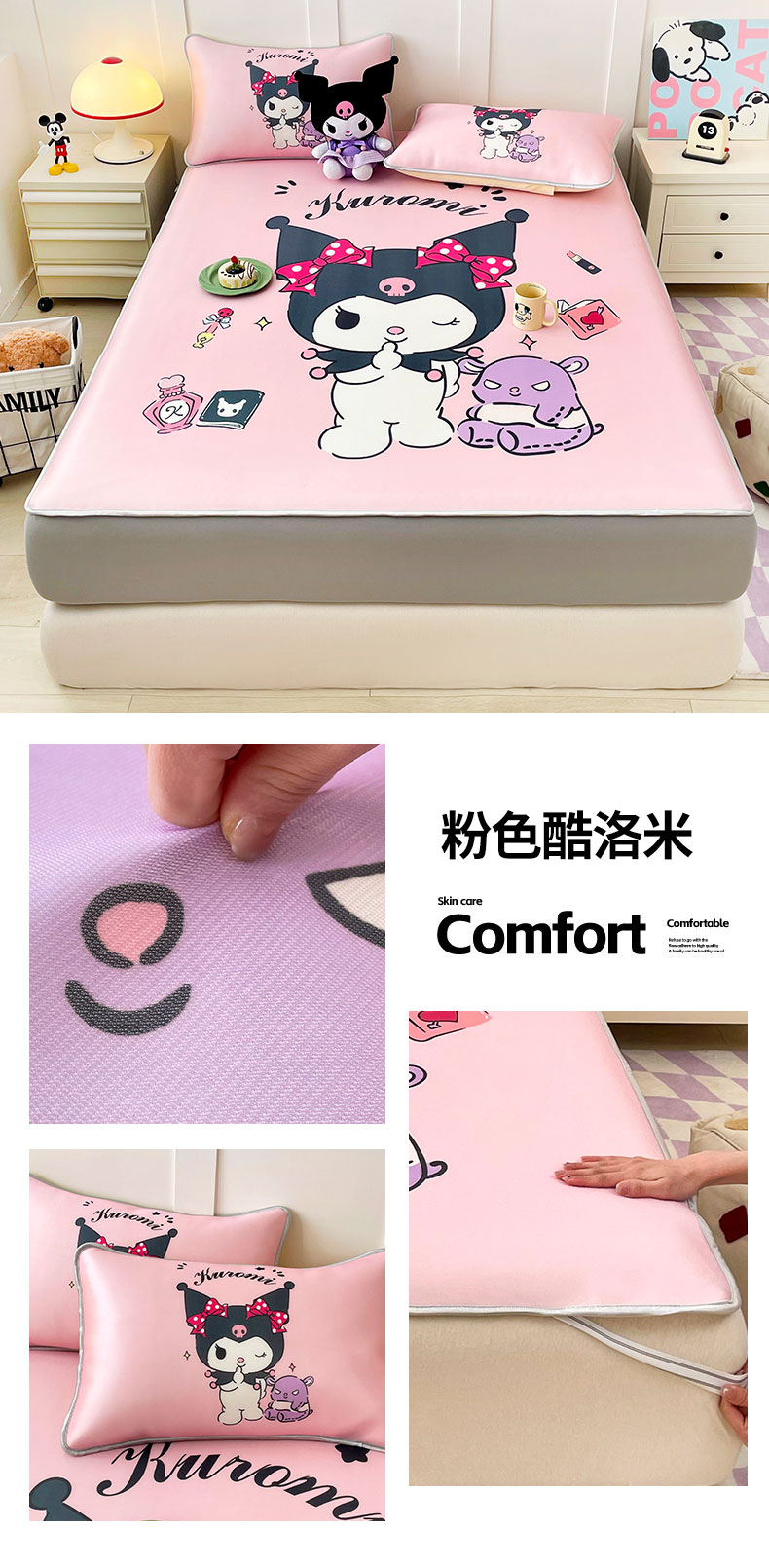 (总)米帛家纺 2025新款大版三丽鸥碳光冰丝凉席床笠款,圆点酷洛米,彩虹帕恰狗,彩虹玉桂狗,草莓美乐蒂,窗帘美乐蒂,粉色酷洛米,皇冠玉桂狗,木马美乐蒂,气球玉桂狗,巧克力酷洛米,糖果美乐蒂,糖果玉桂狗,香水凯蒂猫,樱桃凯蒂猫,樱桃酷洛米