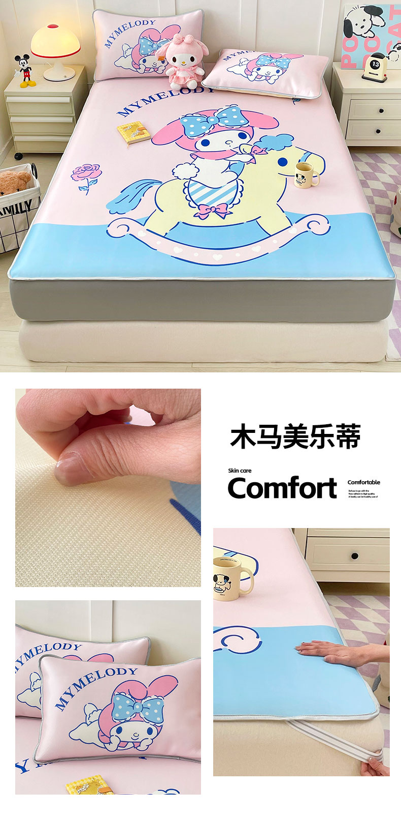 (总)米帛家纺 2025新款大版三丽鸥碳光冰丝凉席床笠款,圆点酷洛米,彩虹帕恰狗,彩虹玉桂狗,草莓美乐蒂,窗帘美乐蒂,粉色酷洛米,皇冠玉桂狗,木马美乐蒂,气球玉桂狗,巧克力酷洛米,糖果美乐蒂,糖果玉桂狗,香水凯蒂猫,樱桃凯蒂猫,樱桃酷洛米