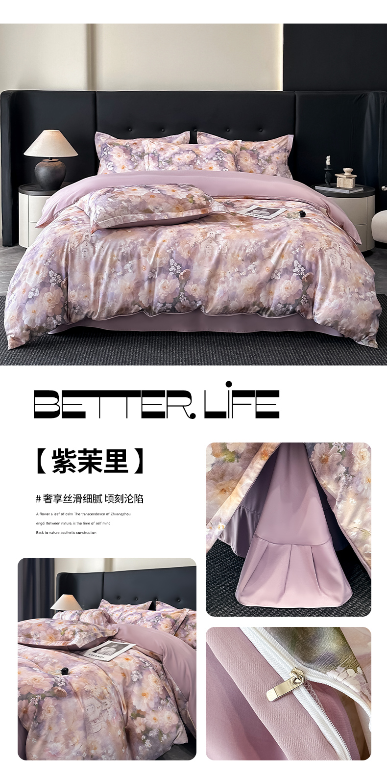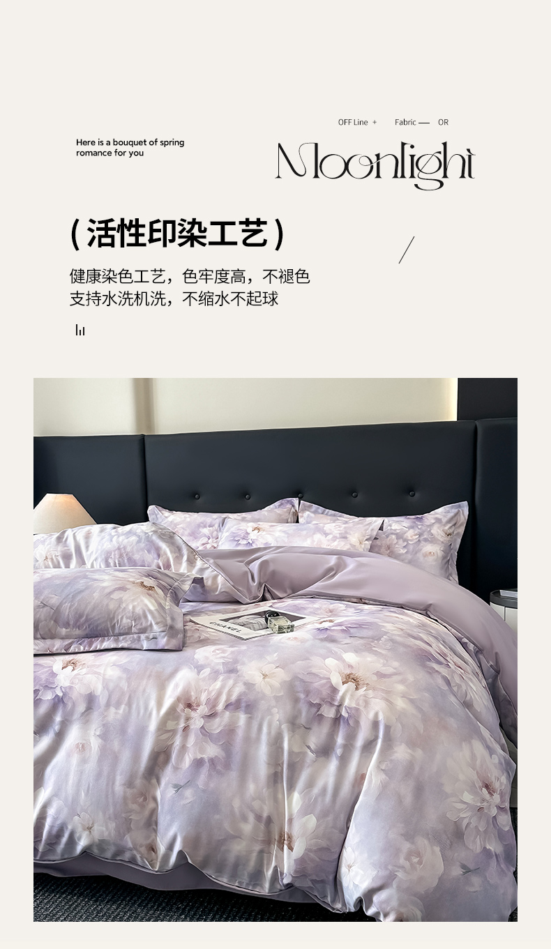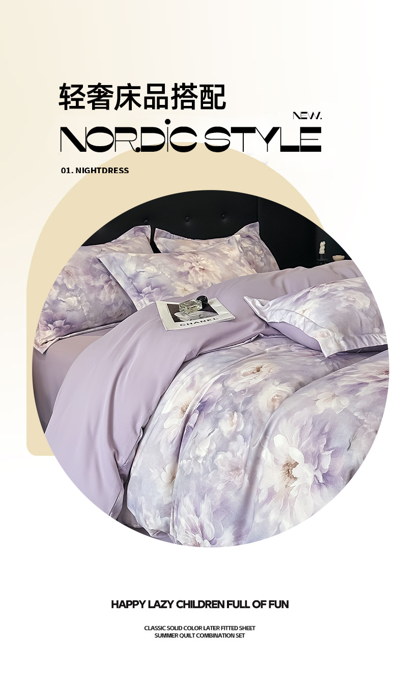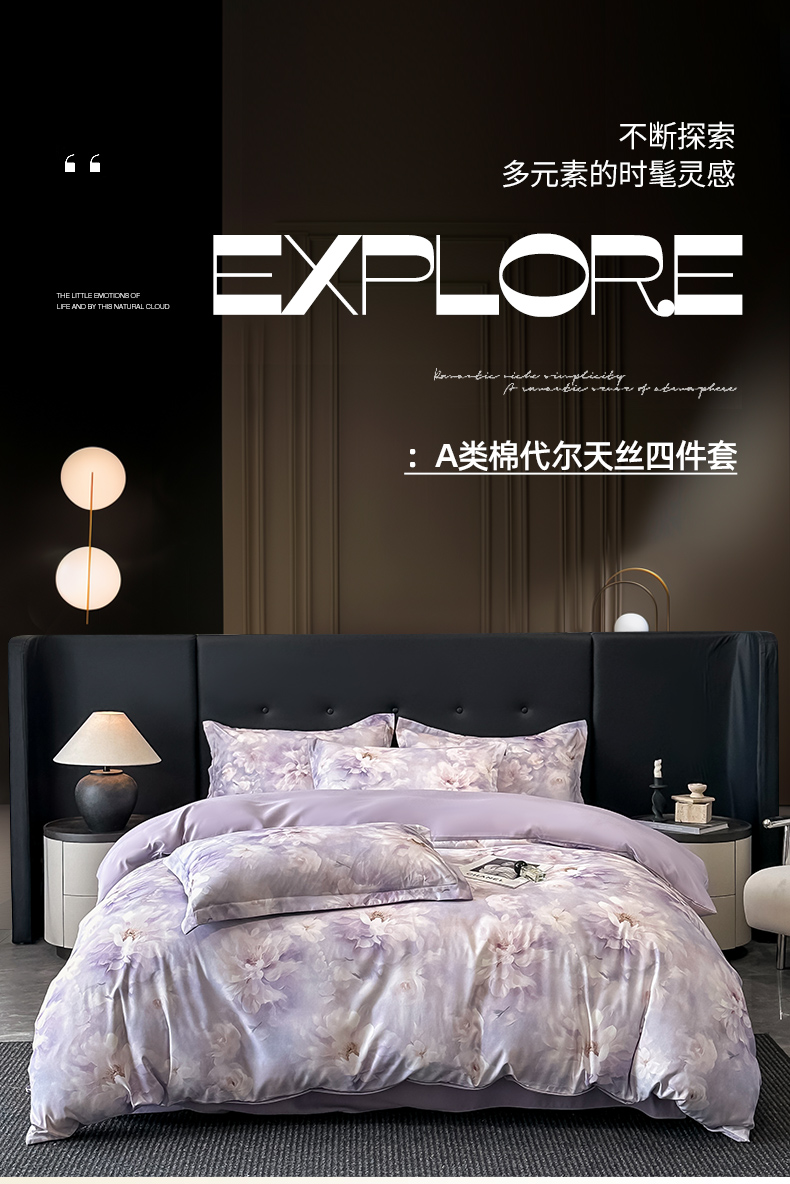 商品名称:金梦拉家纺 2025新款100%棉代尔天丝莱赛尔四件套 清雅紫