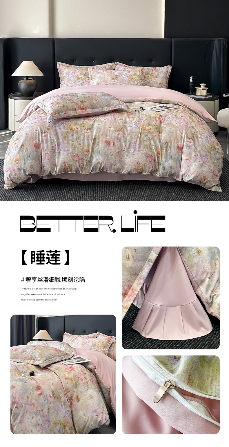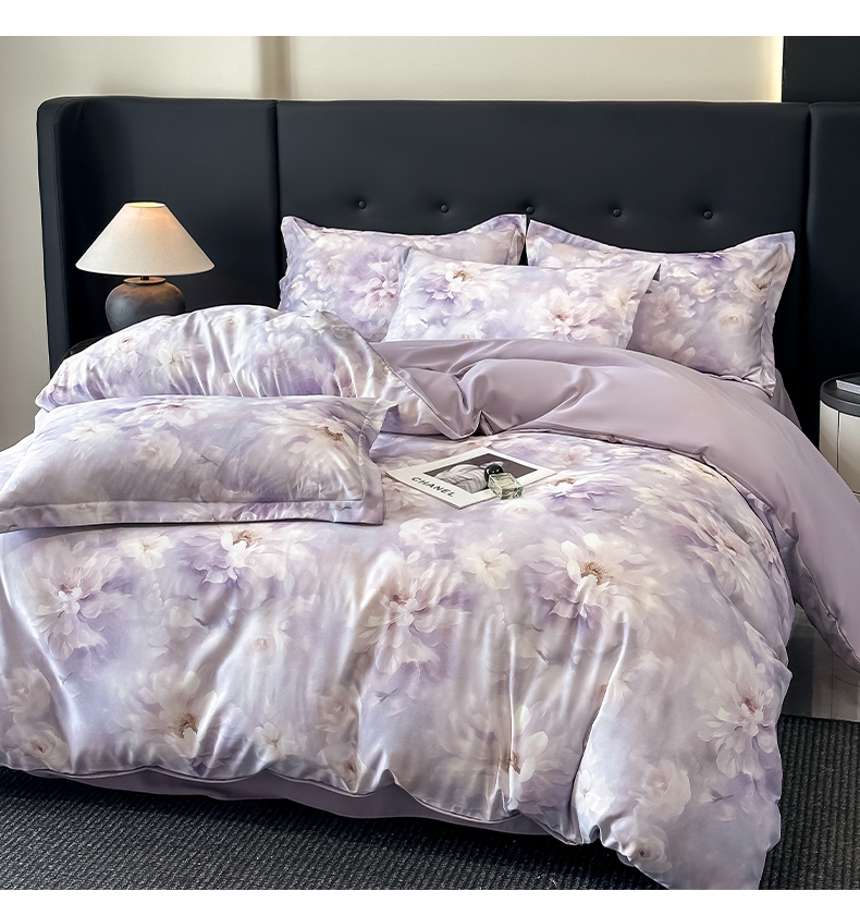 金梦拉家纺 2025新款100%棉代尔天丝莱赛尔四件套 清雅紫