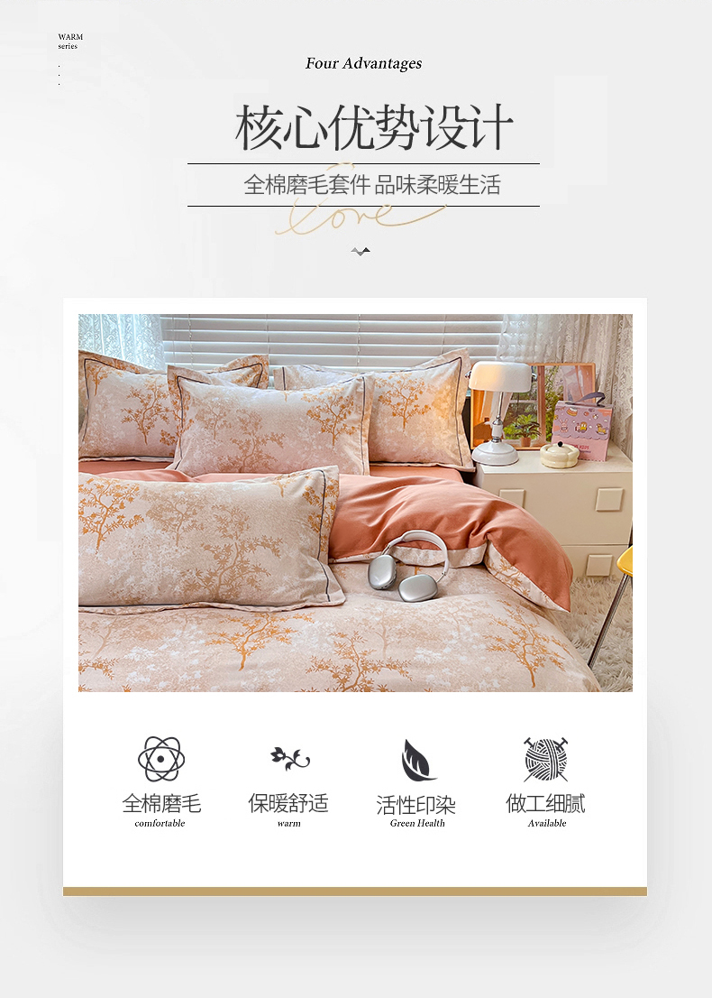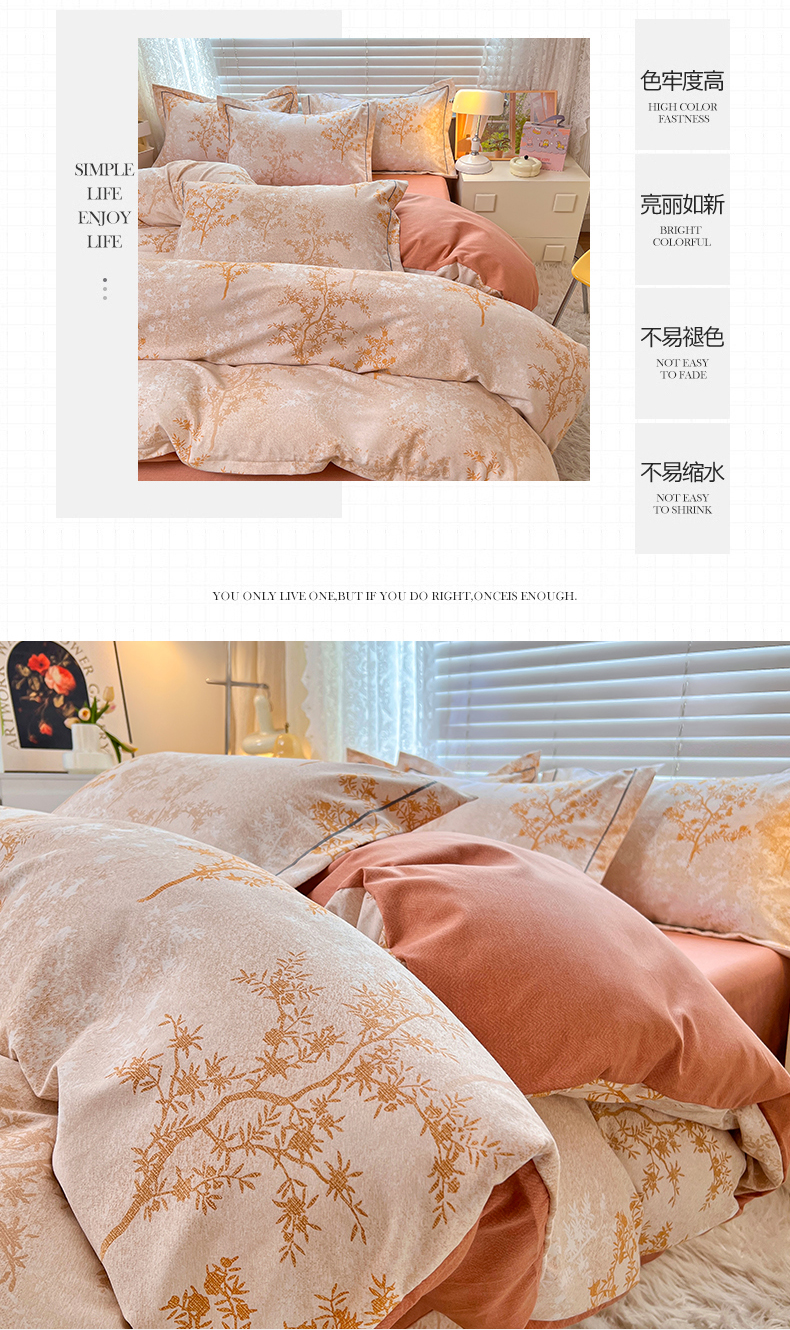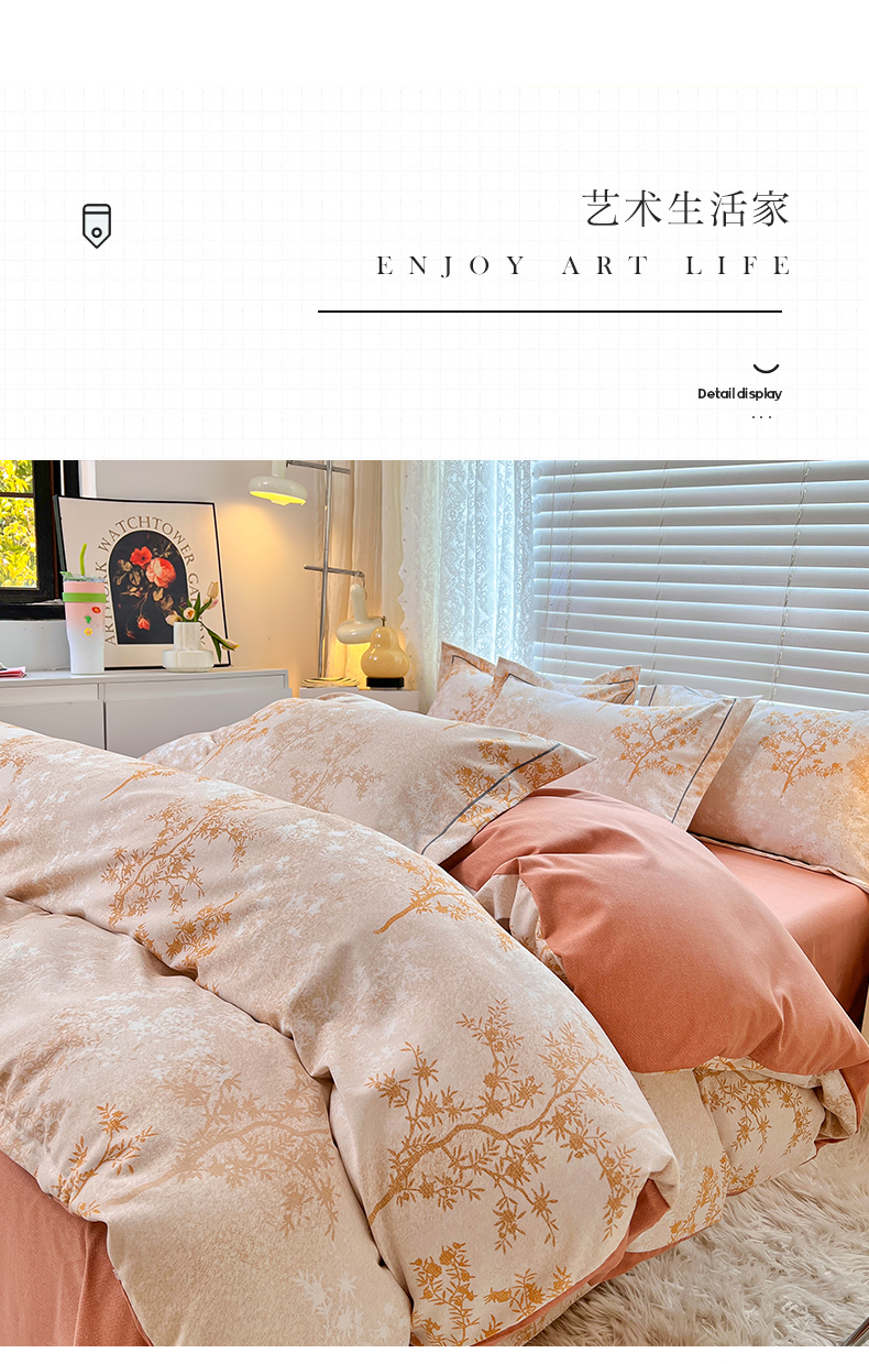 当前位置: 91家纺网 > 商品网购 > 床品套件 > 四件套 > 简约 2025新款全棉四件套活性生态磨毛四件套 沁语繁花-咖