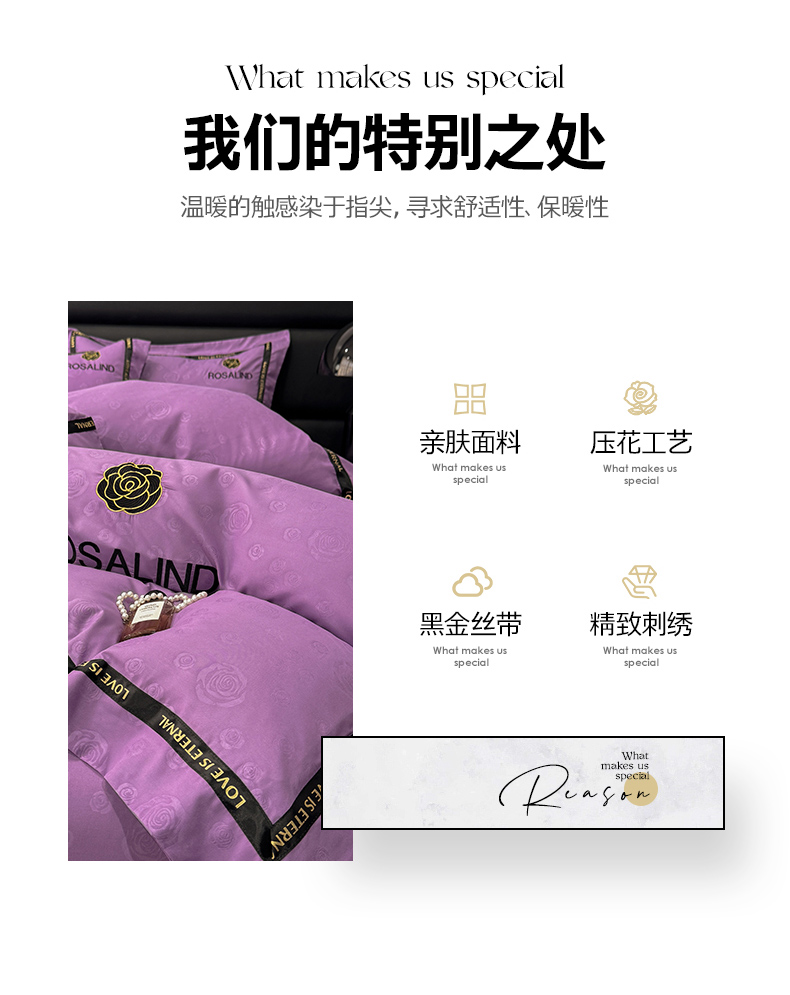 商品名称:2025新款亲肤磨毛刺绣压花四件套--格调系列【提供买家秀】 格调-黛紫
