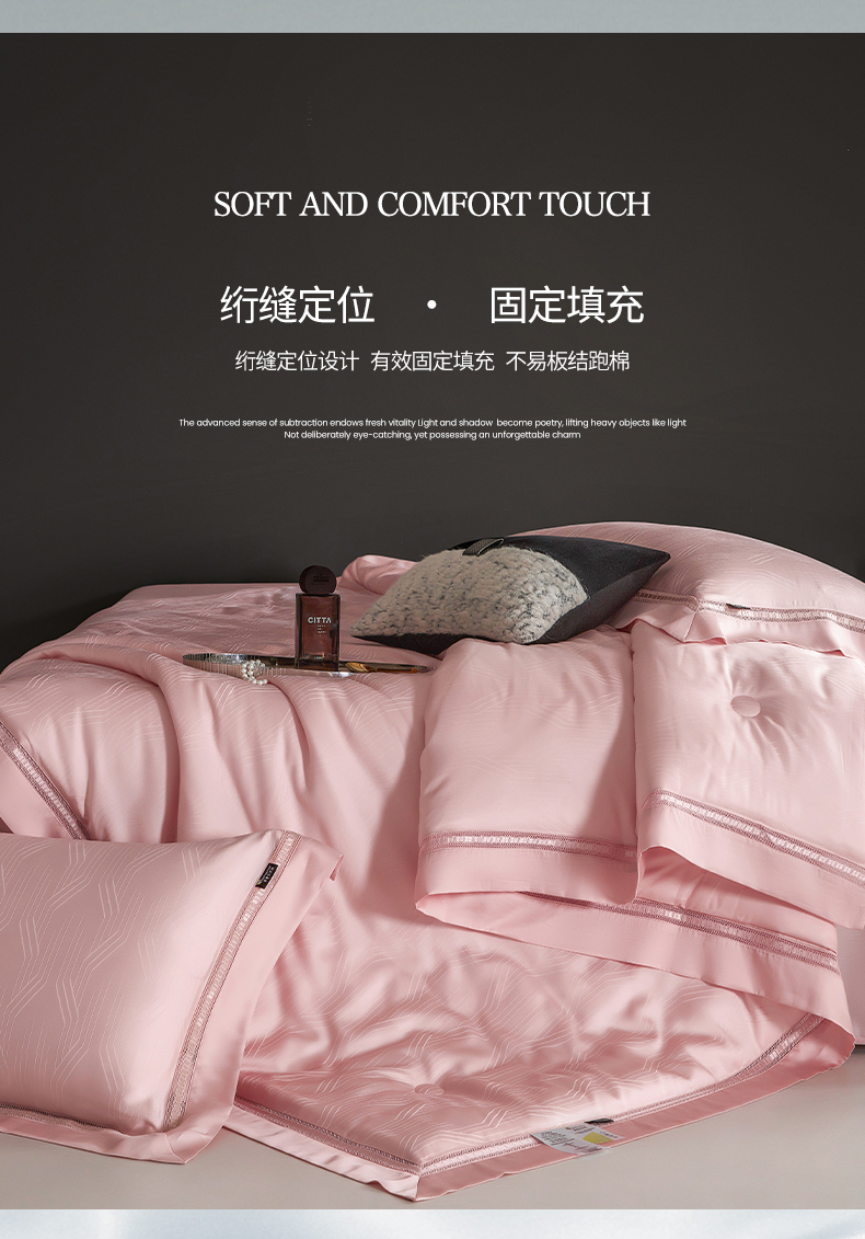 网客家纺 2025新款60天丝提花夏被四件套-香格里拉系列 香格里拉-云锦粉