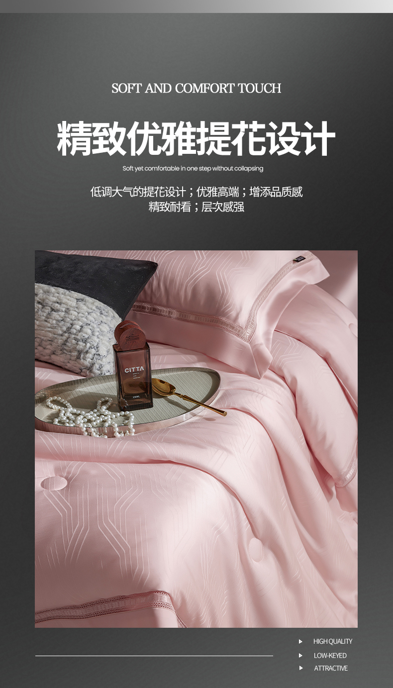 商品名称:网客家纺 2025新款60天丝提花夏被四件套-香格里拉系列 香格里拉-云锦粉