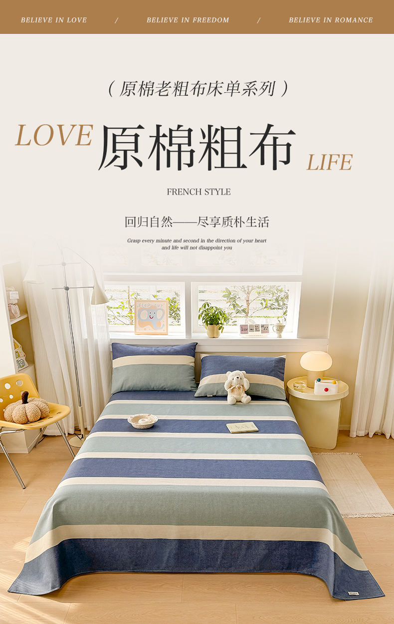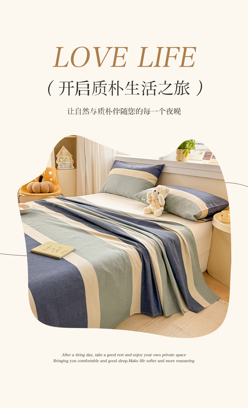 当前位置: 91家纺网 > 商品网购 > 床品套件 > 三件套 > 博弈家纺 2025新款亲肤舒适原棉老粗布床单凉席三件套系列 欢乐时光