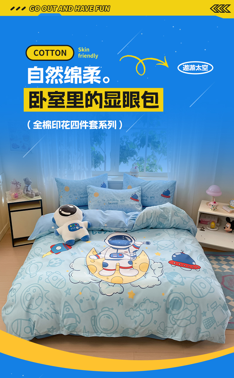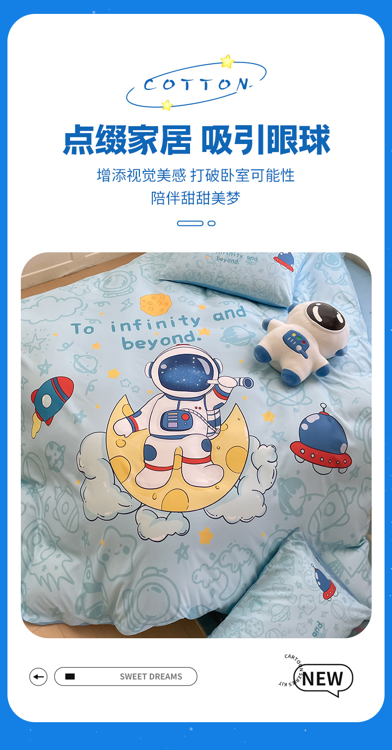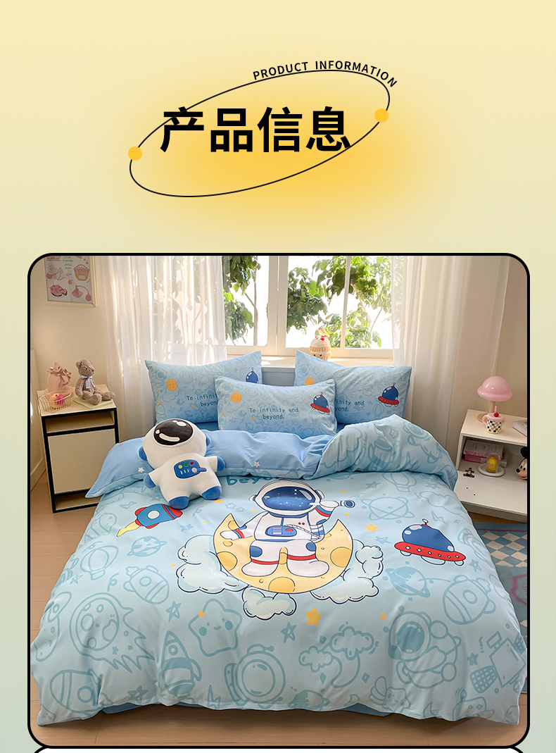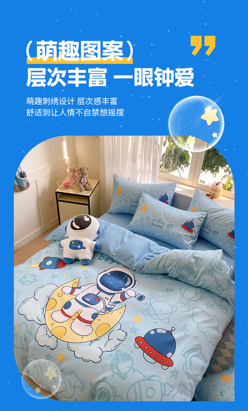 当前位置: 91家纺网 > 商品网购 > 床品套件 > 四件套 > 全棉普通四件套 > 博雅 2025新款纯棉宇航员四件套 绘画宇航员