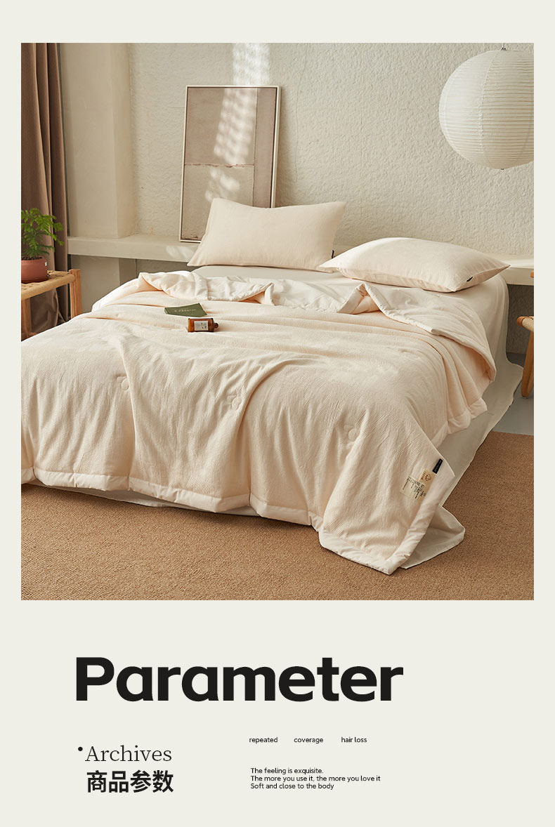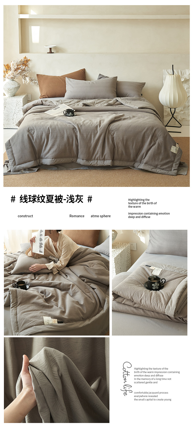 • 91家纺网 家纺一手货源 找家纺 寐绸家纺 2025新款纯棉水洗棉三层提花大豆纤维夏被四件套 线球纹夏被-暗灰
