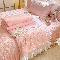 苏米娜家纺2025春夏新品韩版甜美公主风超柔水洗棉床盖四件套刺绣针织棉双层纱纯棉棉麻全棉少女心夹棉床裙款夏被款床盖四件套 幻蝶-樱花粉