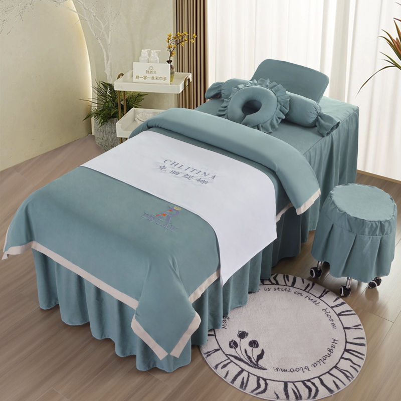 千姿坊美 容床罩 2025新款美 容床罩冬被蜜桃绒刺绣四件套 绿