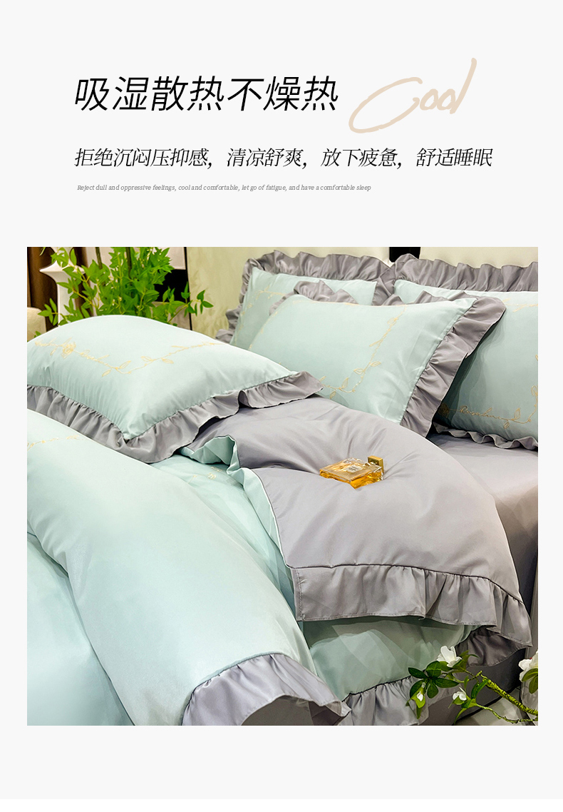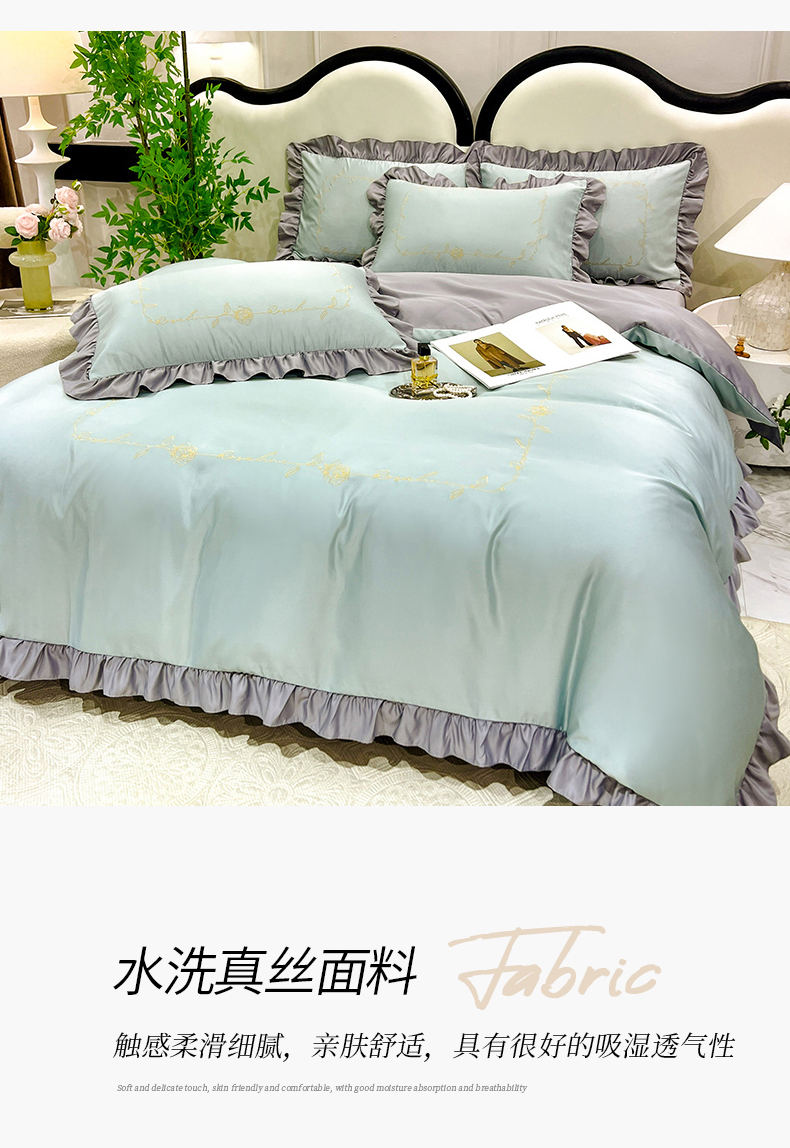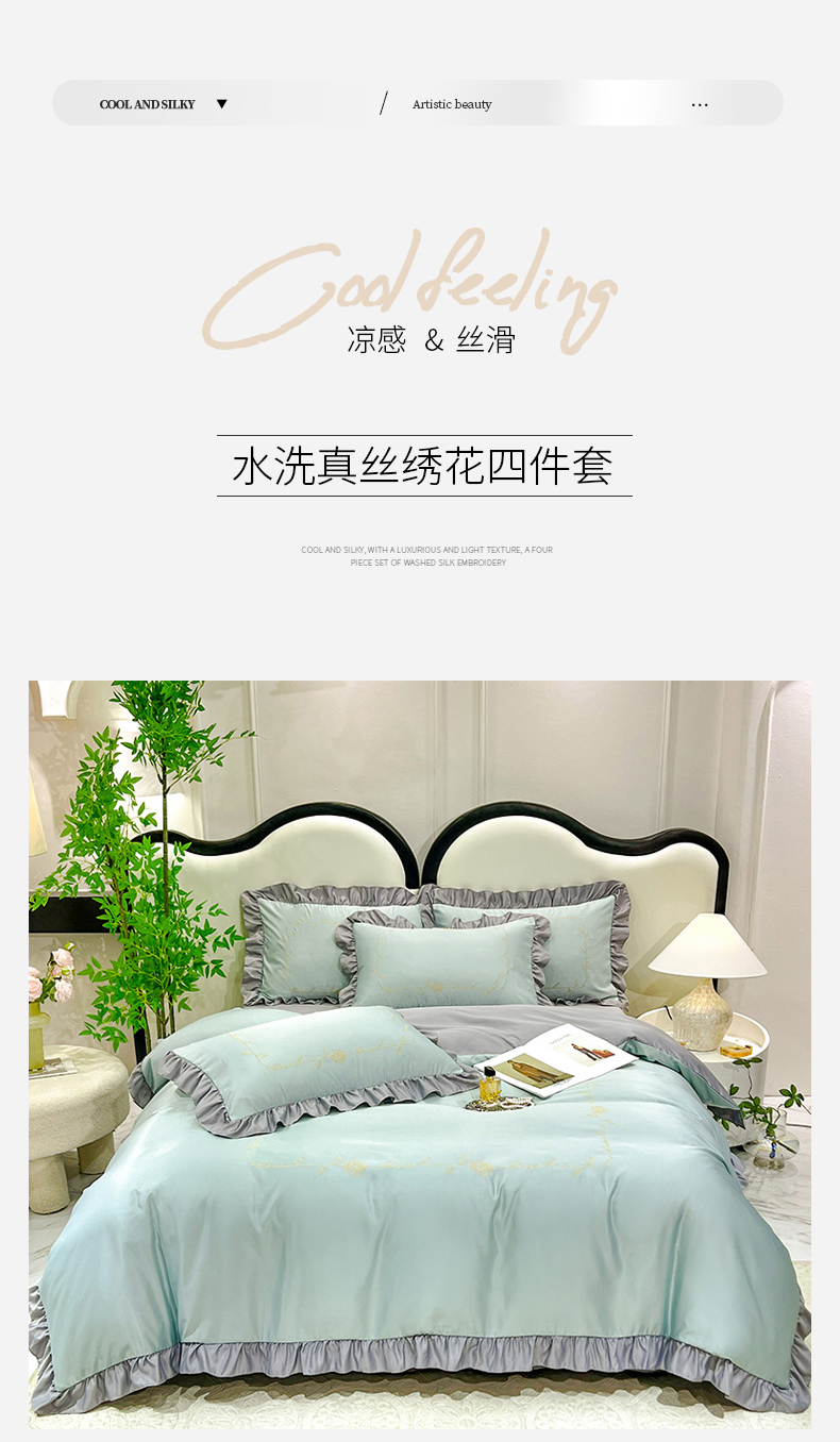 经年 2025年水洗真丝冰丝天丝韩版刺绣四件套直播爆款 一世系列 一世-抹茶浅灰