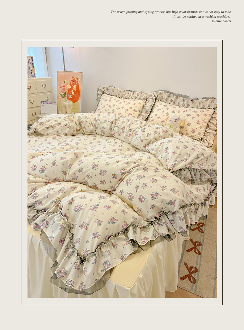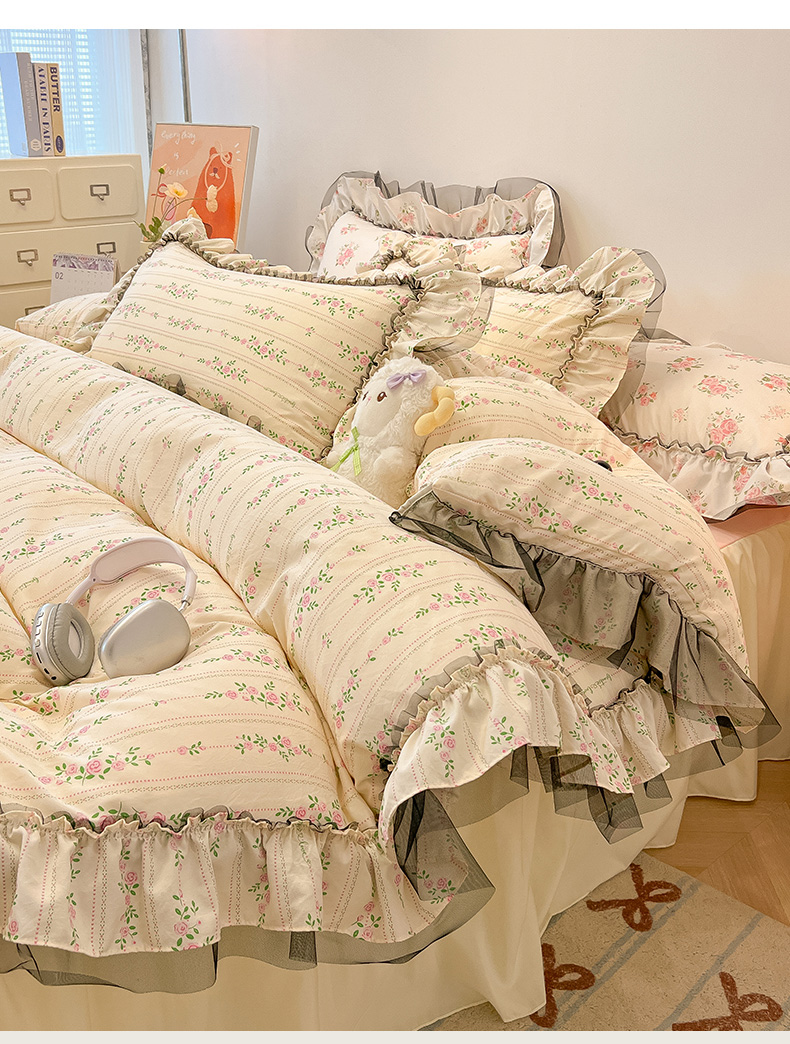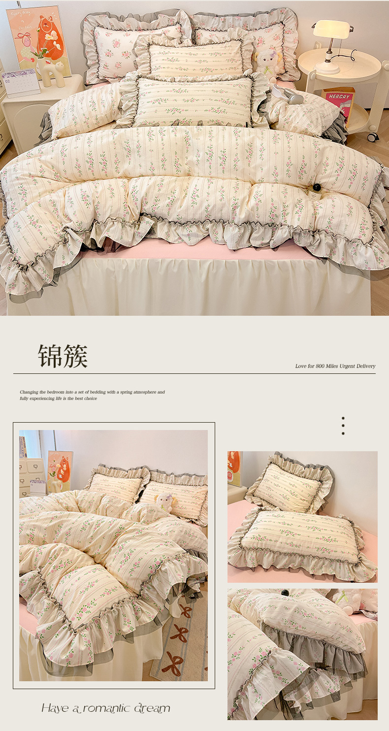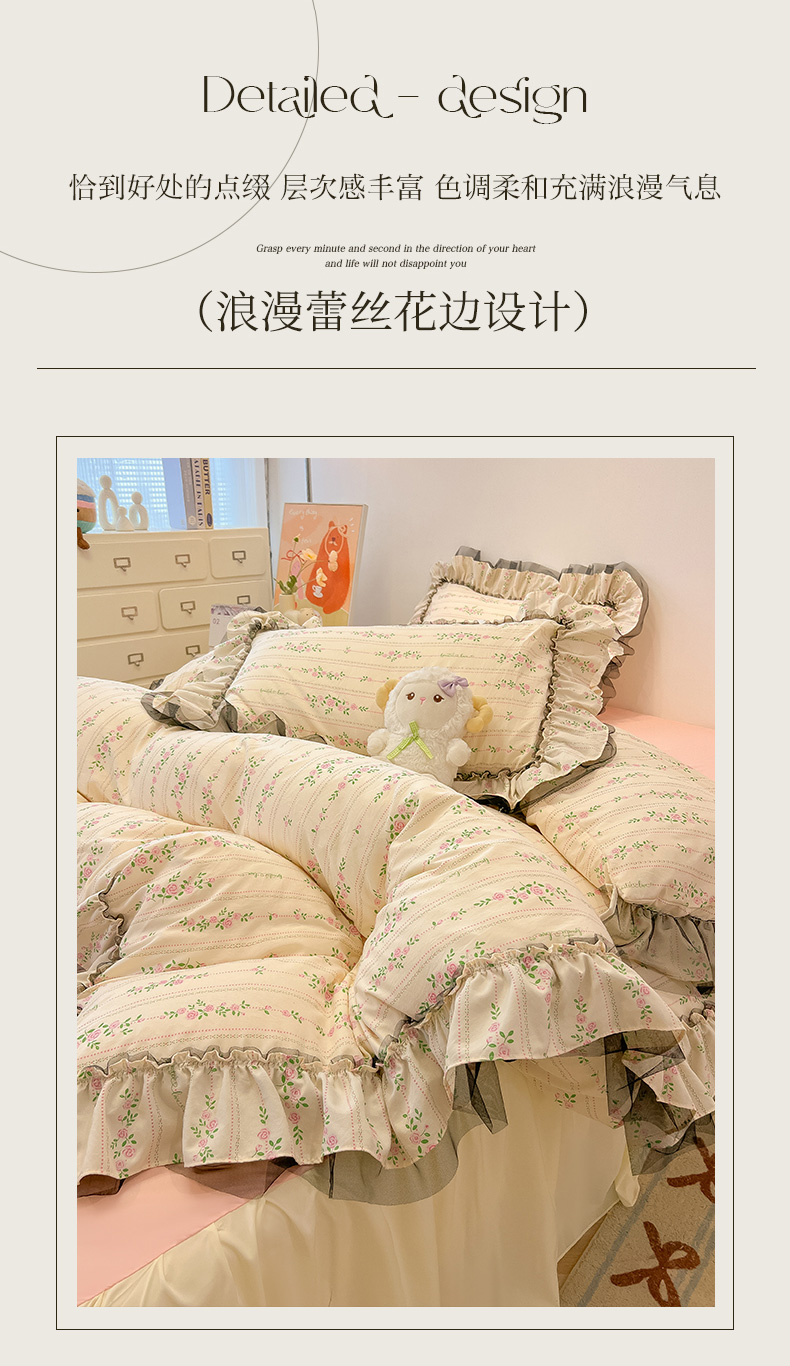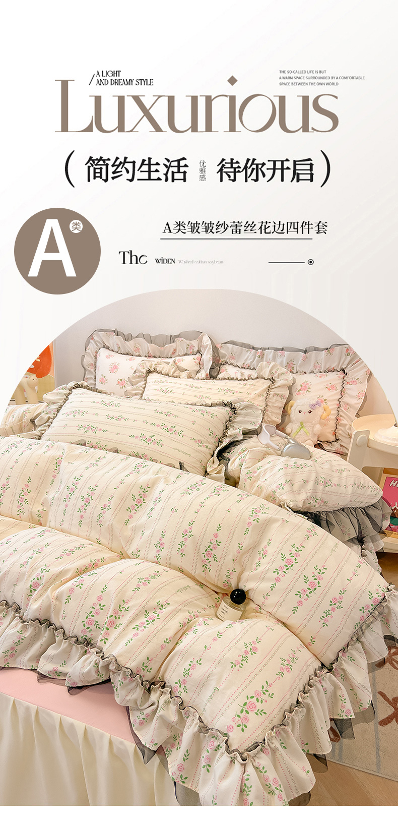 当前位置: 91家纺网 > 商品网购 > 床品套件 > 四件套 > 其它四件套 > 眠帛家居 2025新款A类皱皱纱蕾丝花边四件套 锦簇