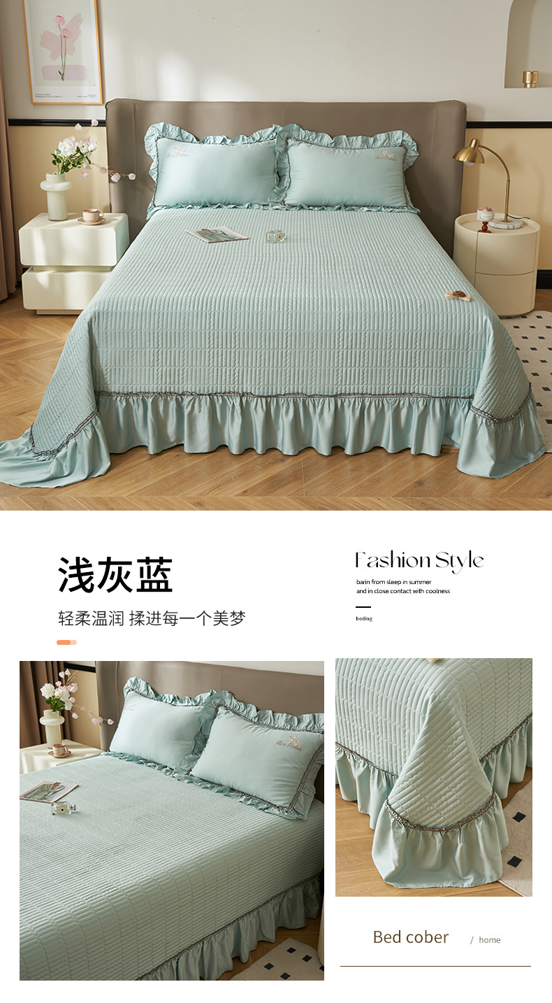 恒爱家纺 2025新款莫代尔柔情似水多功能夏被床盖四件套 浅灰蓝