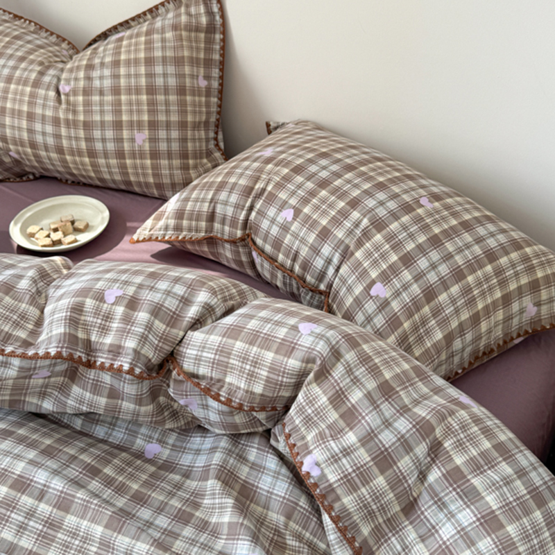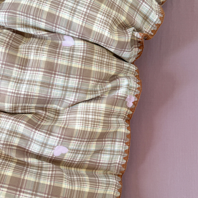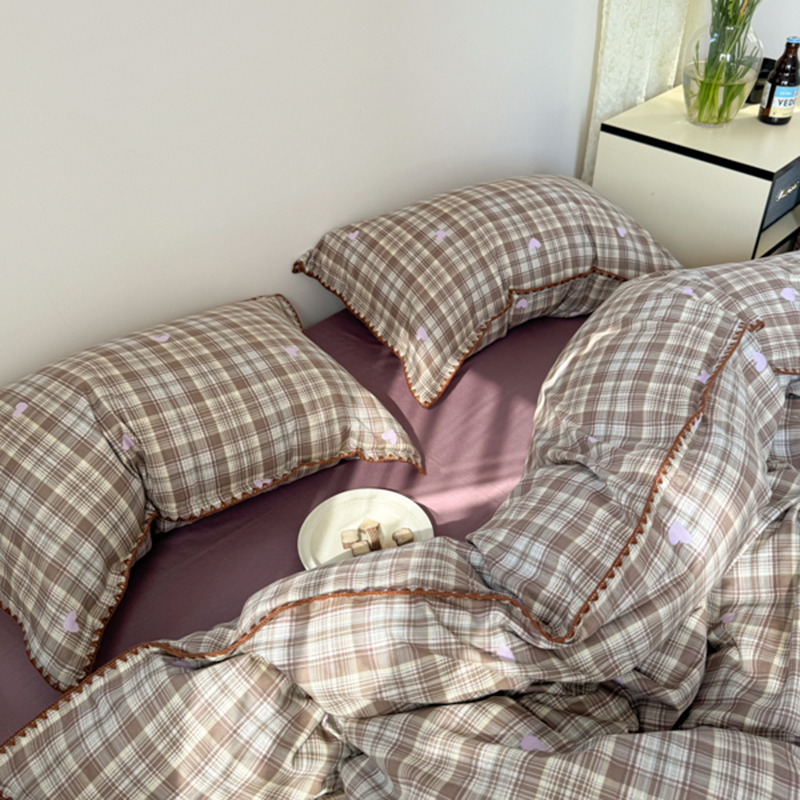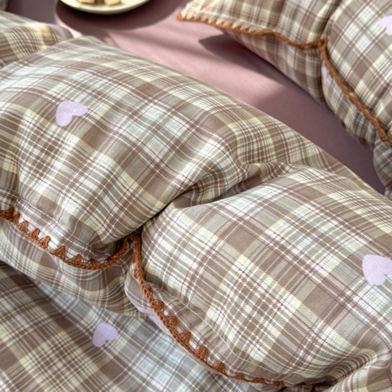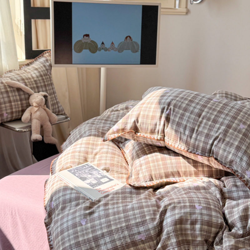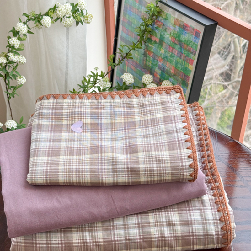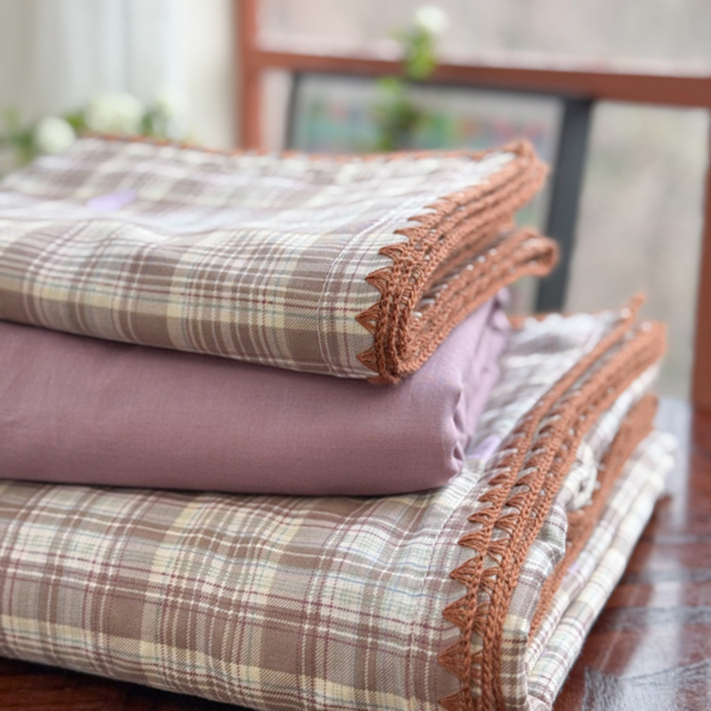 当前位置: 91家纺网 > 商品网购 > 床品套件 > 四件套 > 全棉普通四件套 > 金丝鸟家纺 2025新款全棉双层纱贝壳边四件套格子系列 复古棕格