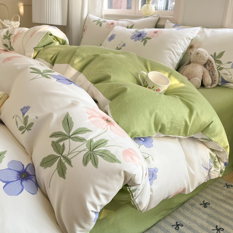 商品名称:寐眠 2025新款A类全棉印花四件套 翠竹