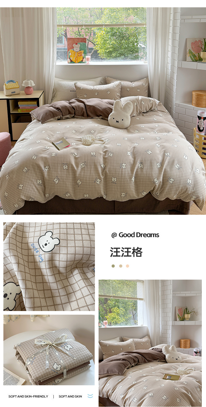 (总)时年家纺 2025新款全棉磨毛大版卡通印花系列套件,趣味熊,爱心熊,安静小象,波点兔,可爱熊宝,萌宝,奶油玩偶,小奥汀,慵懒猫咪