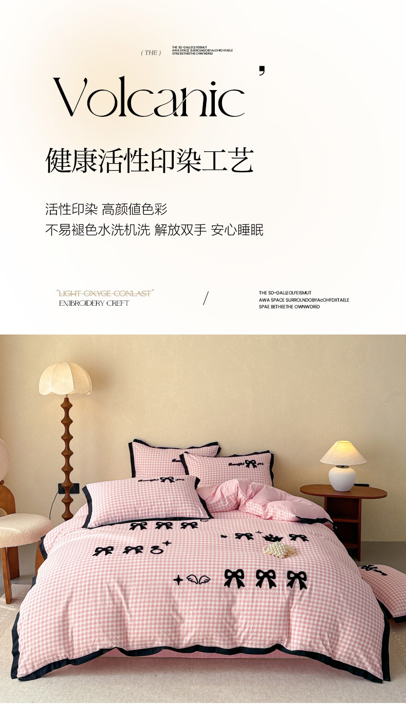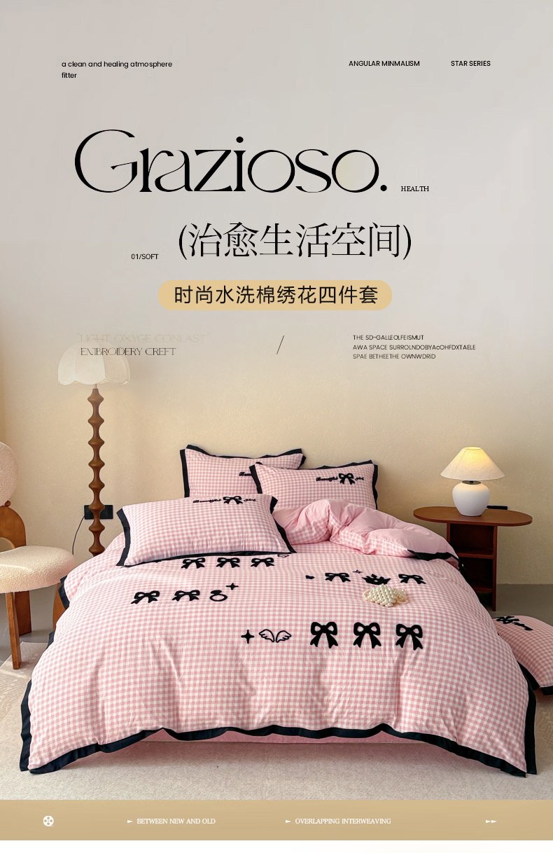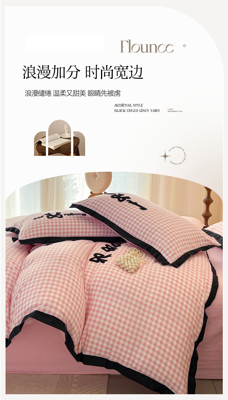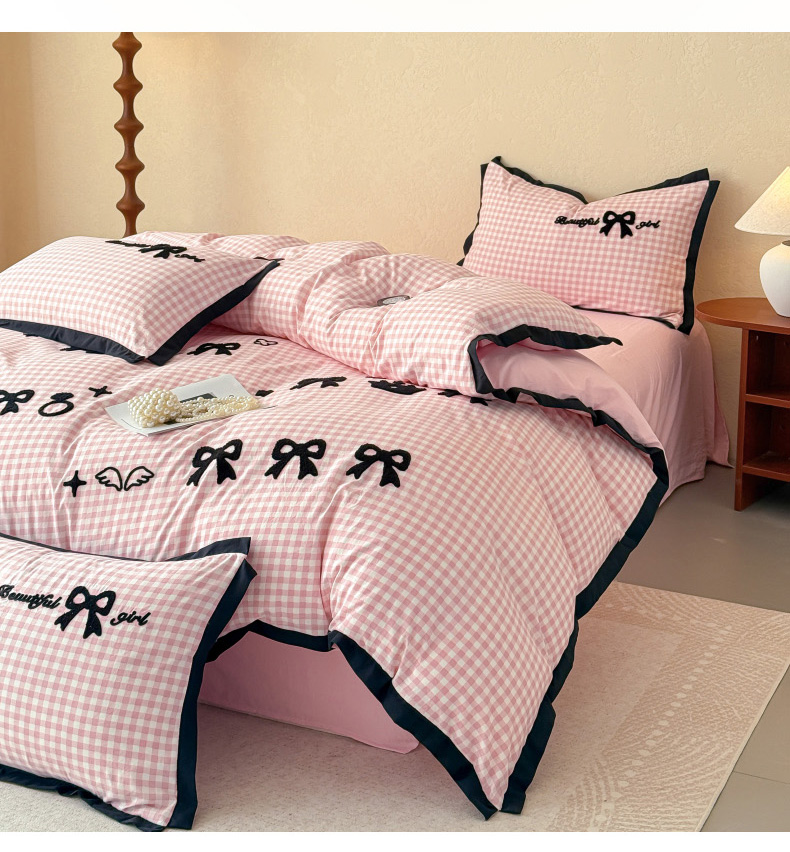 当前位置: 91家纺网 > 商品网购 > 床品套件 > 四件套 > 其它四件套 > 米可2025新款水洗棉绣花花边款四件套 蝴蝶结-粉