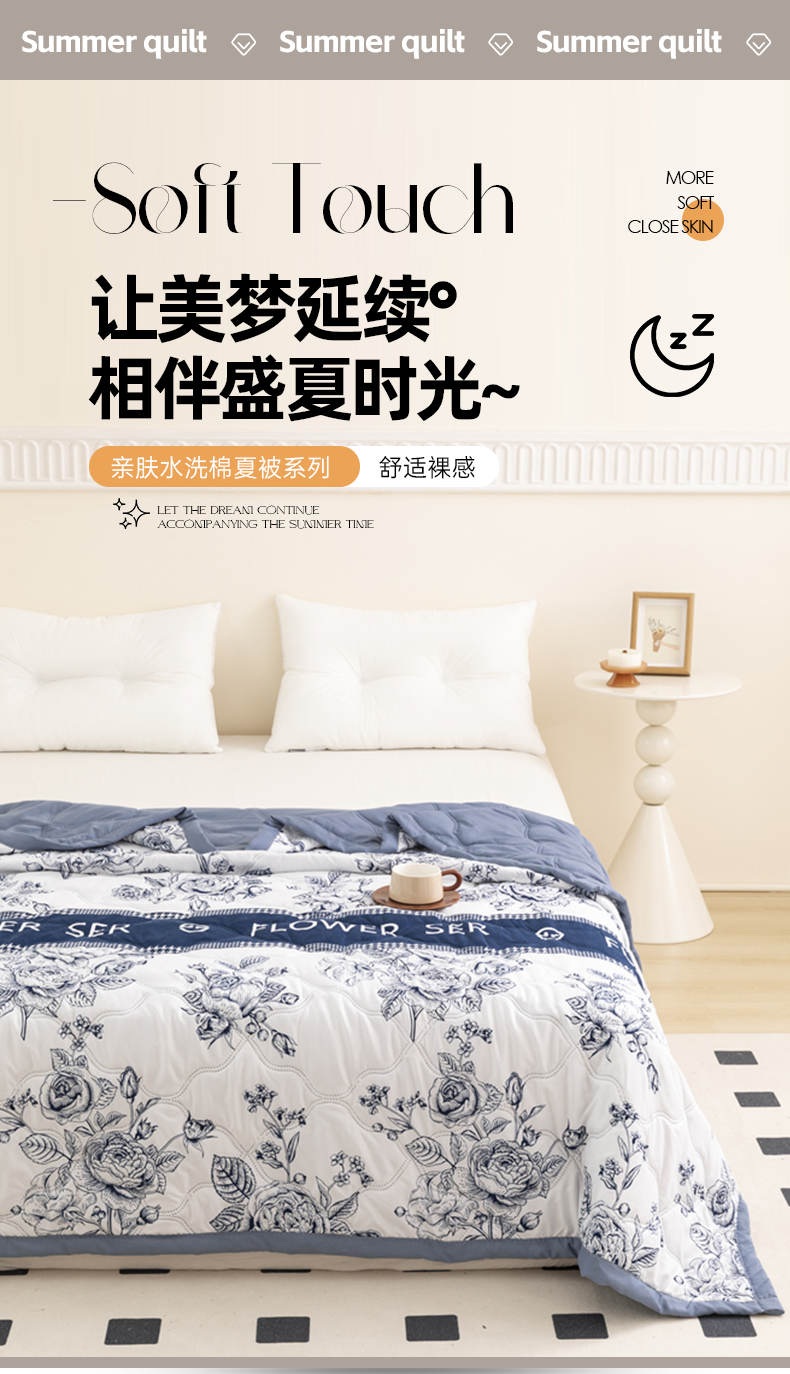 商品名称:席万佳 2025新款直播热款印花夏凉被空调被被子被芯水洗棉夏被 水墨画