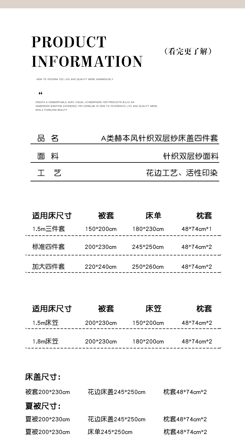 200x230cm夏被四件套 床盖245x250cm