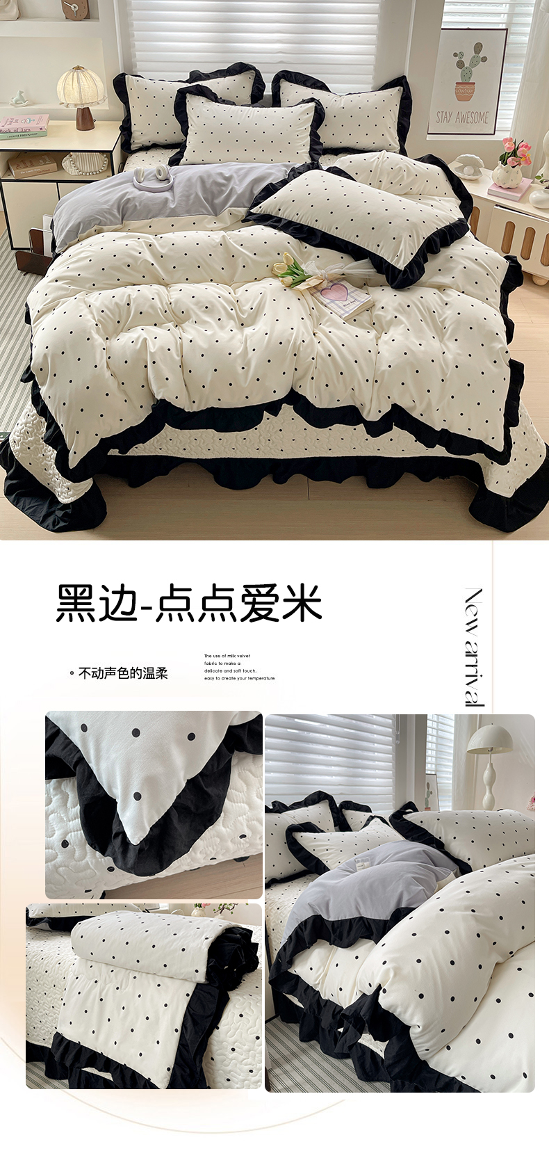 (总)富米莱(原臻工厂) 2025新款热卖舒适大宽花边牛奶绒床盖床裙四件套,爆款大宽花边-花季玫瑰,爆款大宽花边-豹纹,爆款大宽花边-草莓喵喵,爆款大宽花边-黑波点,爆款大宽花边-红波点,爆款大宽花边-蝴蝶结紫豹纹,爆款大宽花边-花季少女,爆款大宽花边-乌梅子酱,爆款大宽花边-樱桃点点,爆款大花边一k t猫粉,爆款大花边一k t猫蓝,爆款大花边一波点小熊,爆款大花边一幸运波点,爆款大花边-奶油粉点点,爆款大花边-奶油黑点点,爆款大花边-奶油红点点,爆款大花边-奶油红樱桃,爆款大花边-奶油碎花兔