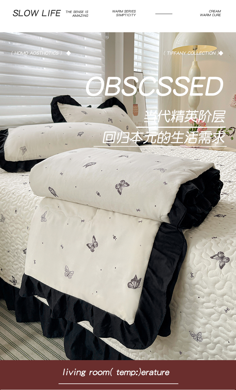 (总)富米莱(原臻工厂)2025新款A类针织双层纱赫本风床盖四件套蝴蝶