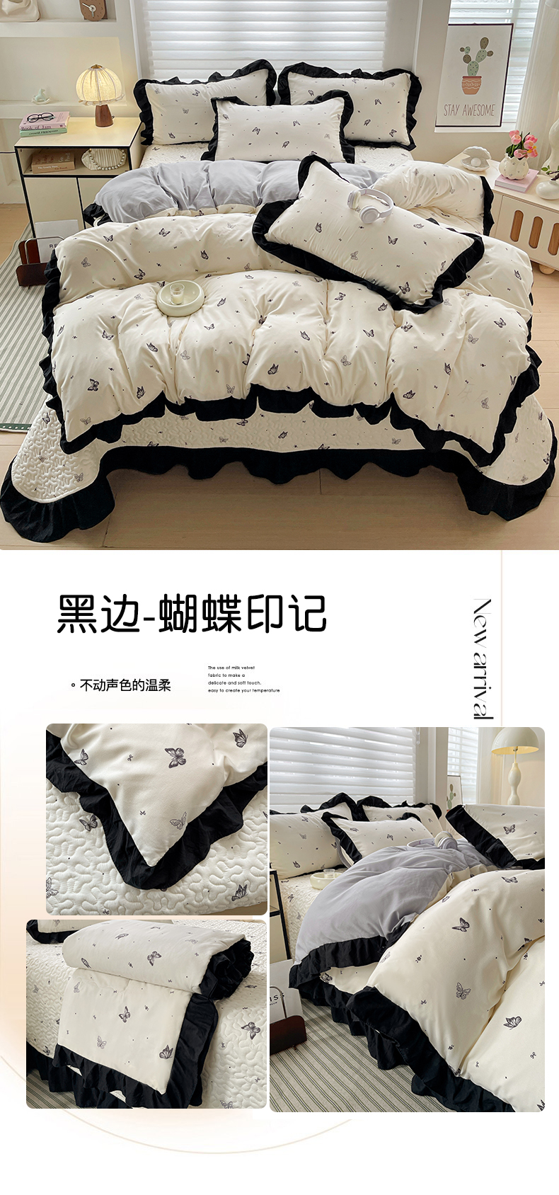商品名称:(总)富米莱(原臻工厂)2025新款A类针织双层纱赫本风床盖四件套蝴蝶