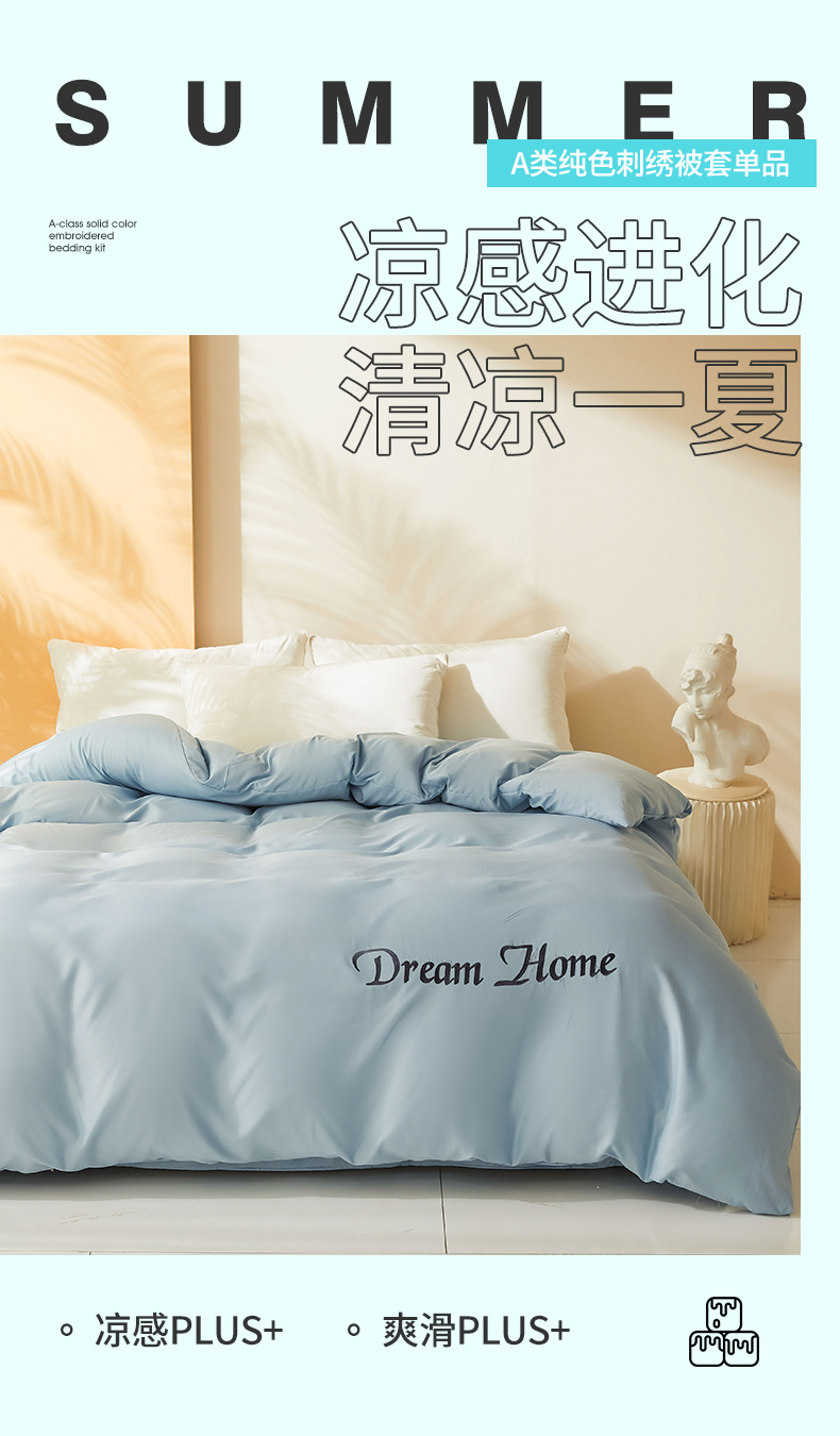 商品名称:七仙女家纺 2025新款水洗真丝-梦幻家园系列单被套 浅水兰