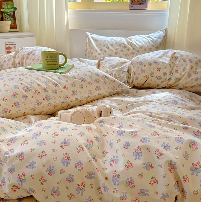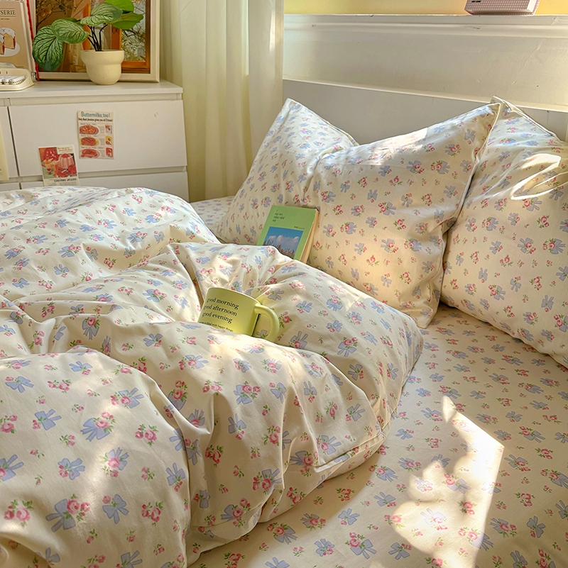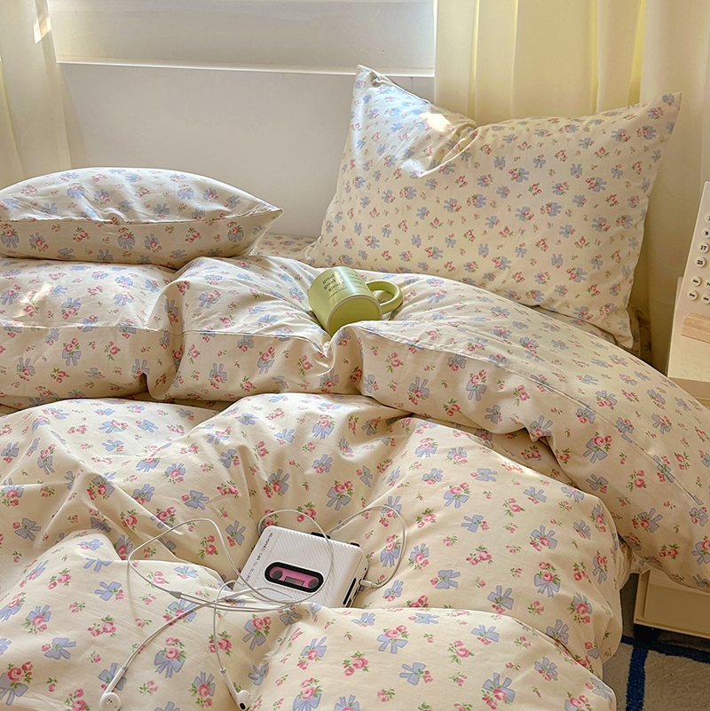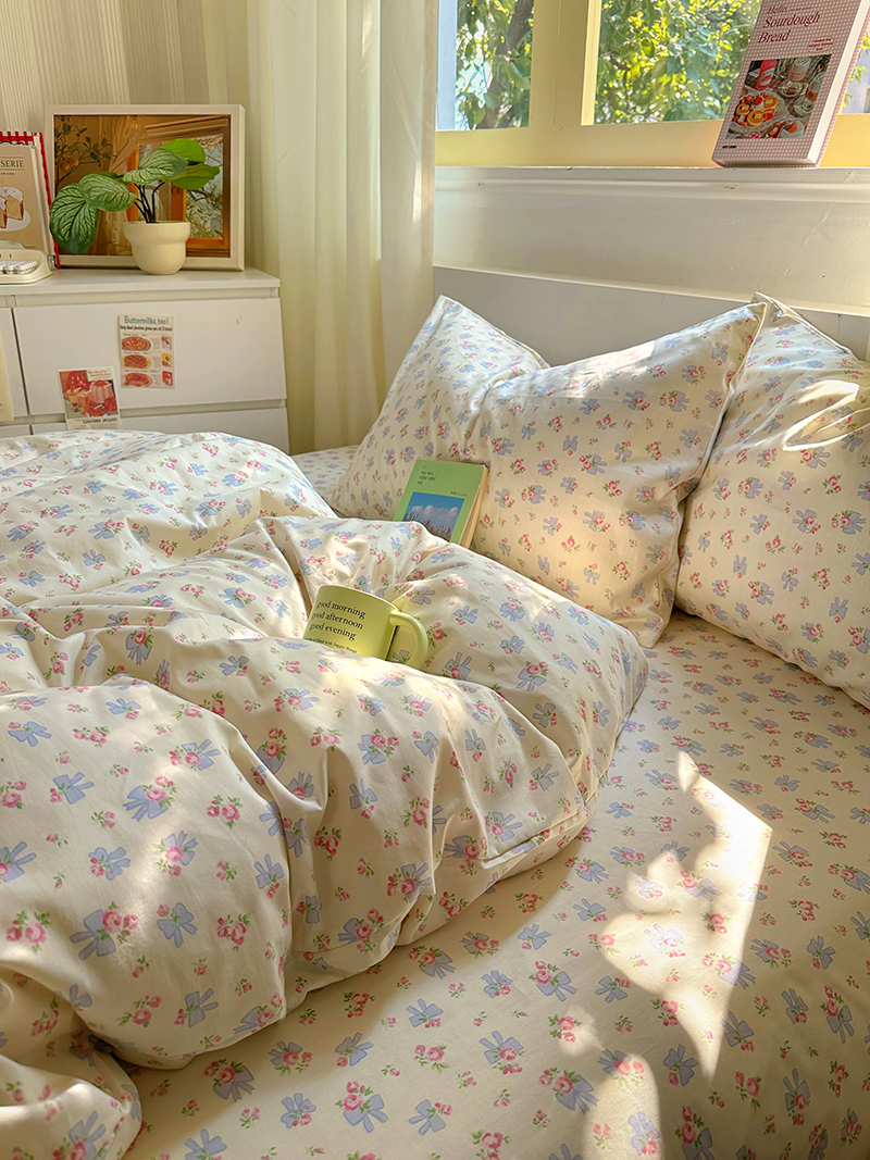 (总)田野2021小清新全棉四件套纯棉碎花田园风三件套,菲菲兔,芬芳-绿,花期,萝拉,莎拉,恬爱,仙草,樱花草-蓝