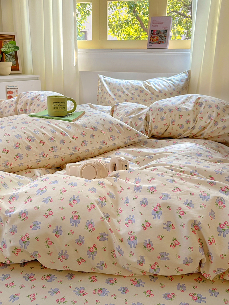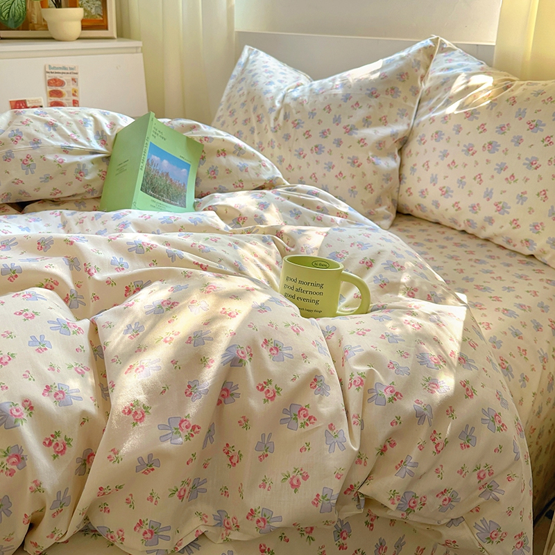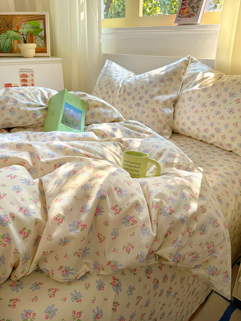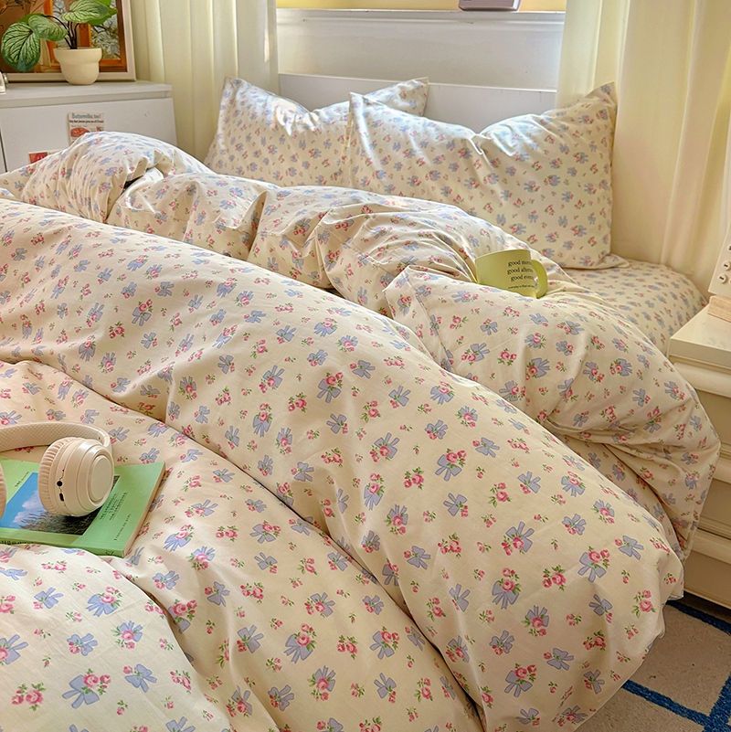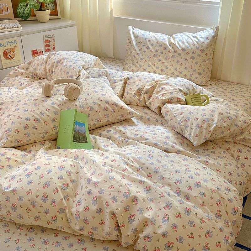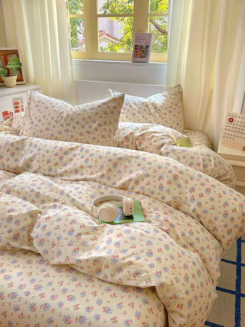 (总)田野 2022新款水洗棉小清新小碎花全棉四件套,花丛,花涧,绿婉,曼舞,桃夭,甜馨草莓,兔兔,银杏