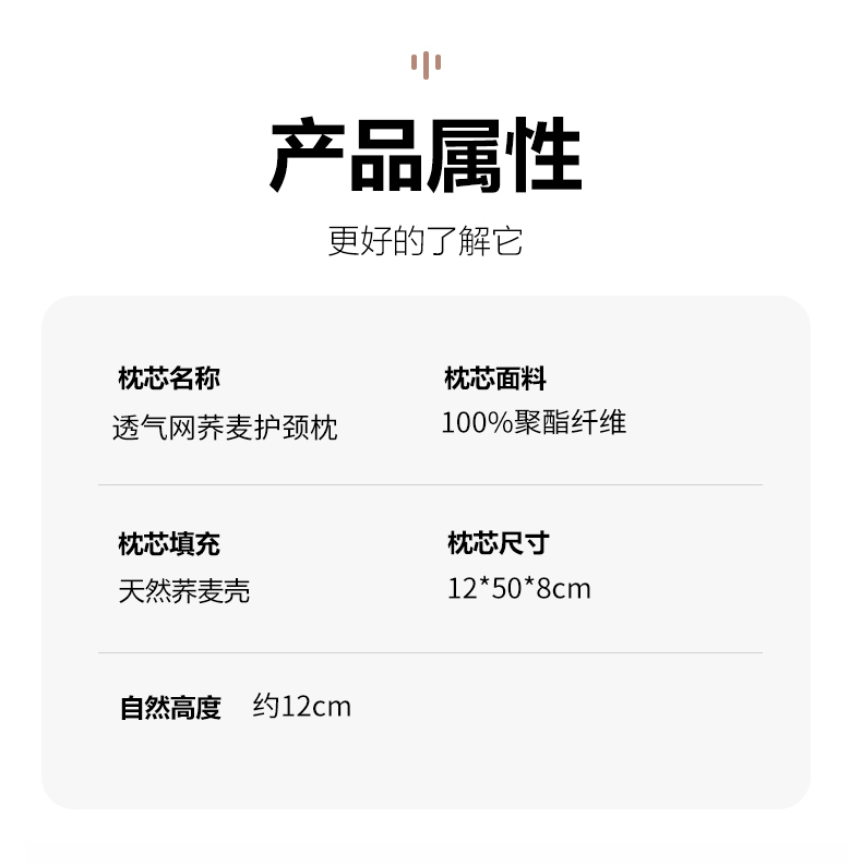 当前位置: 91家纺网 > 商品网购 > 枕头/枕芯/保健枕/颈椎枕 > 普通枕芯 > 九州枕芯2025新款透气网荞麦护颈枕枕头枕芯 米色12x50x8cm/只