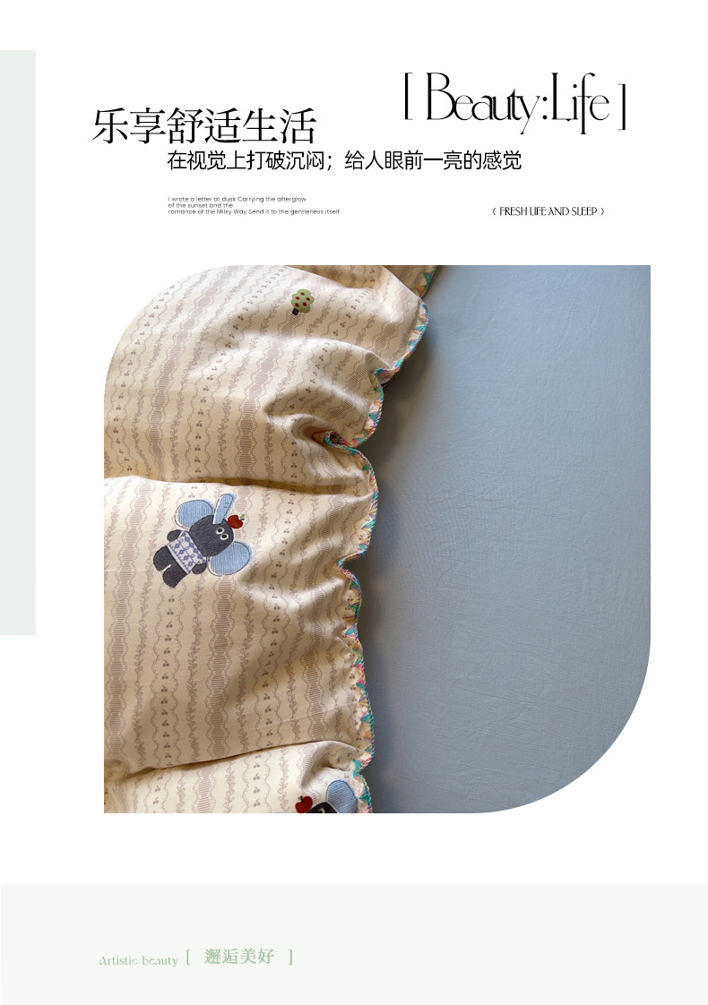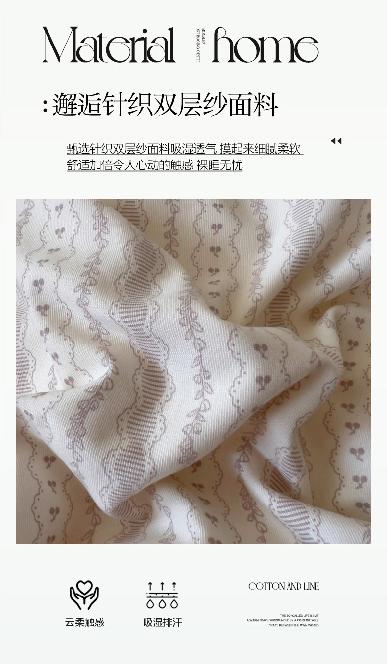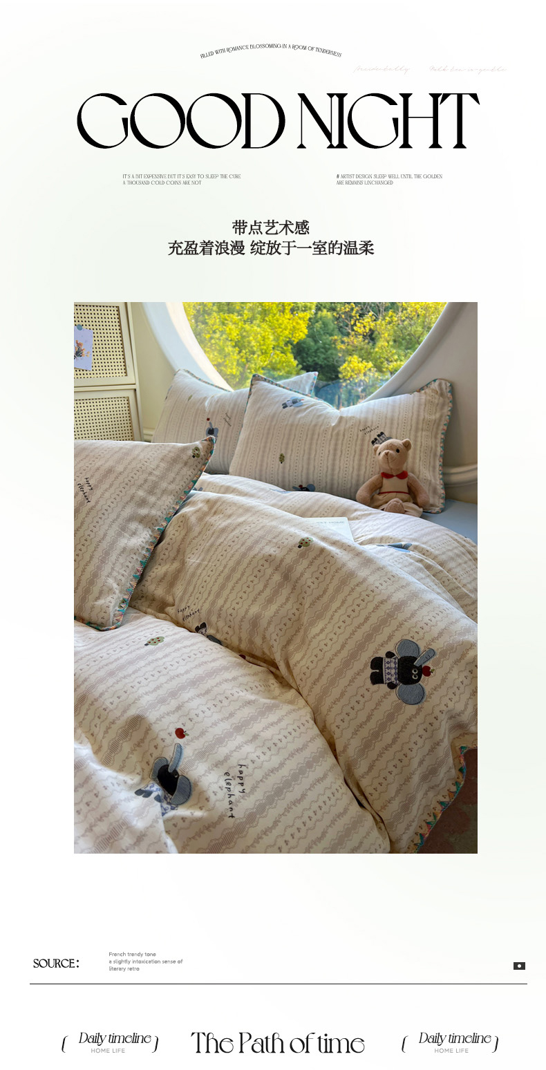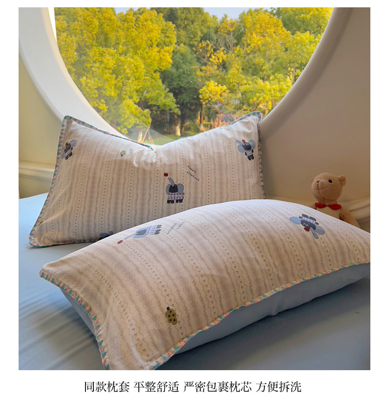 商品名称:葡萄家 2025爆款高克重彩色三角针A类针织双层纱四件套 提供买家秀 北鼻象
