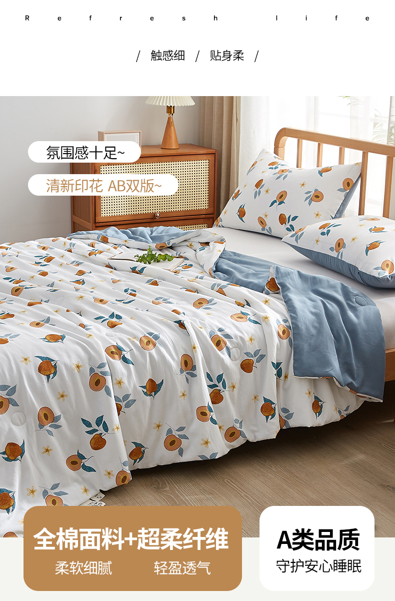 商品名称:伊人坊 2025新款全棉印花夏被 桃桃