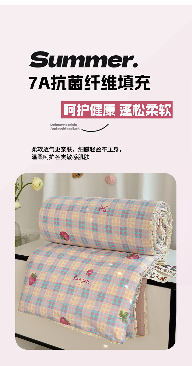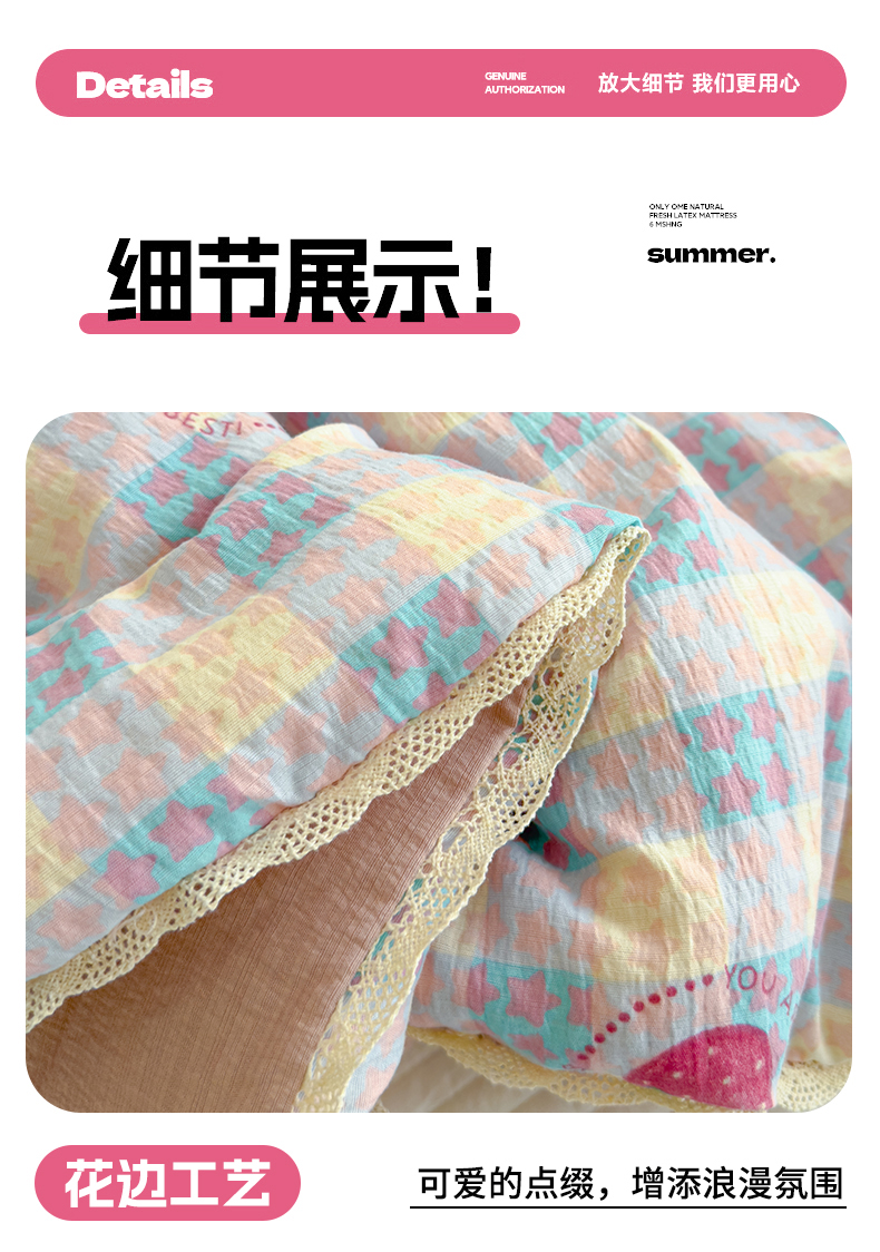 商品名称:贝扬思 2025新款云感双层纱抗菌花边夏被 零碎草莓