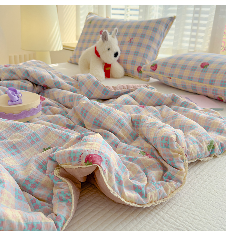 贝扬思 2025新款云感双层纱抗菌花边夏被 零碎草莓