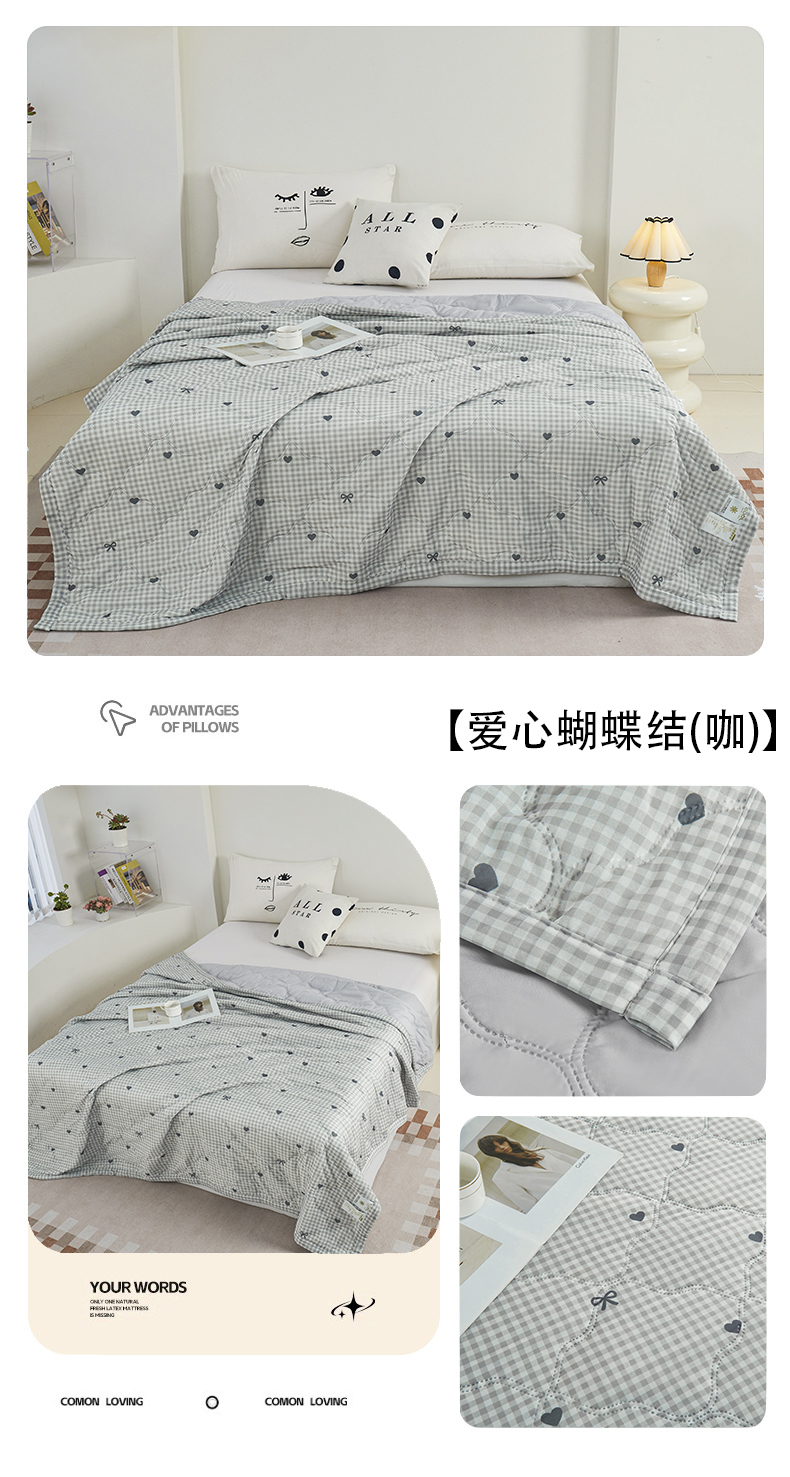 被多多被业 2025新款凉感丝印花夏被夏凉被空调被 爱心蝴蝶结-咖