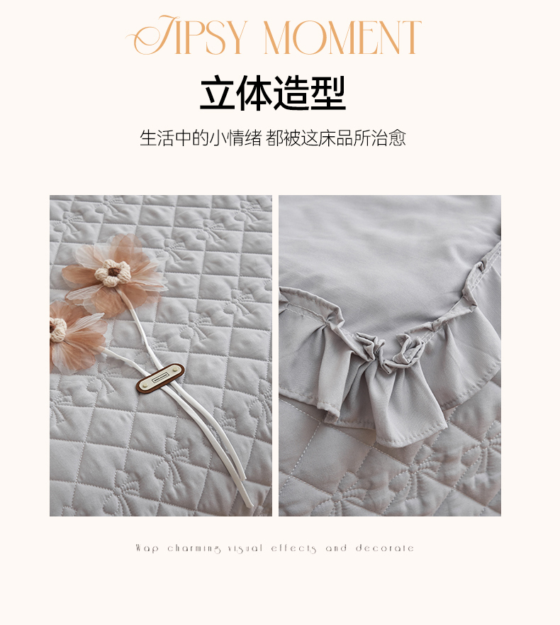 商品名称:恒爱家纺 2025新款针织棉立体扶桑花夏被床盖四件套 绅士灰