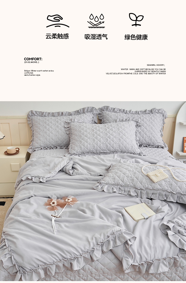 (总)恒爱 2022秋冬水晶绒翩翩花舞夹棉床裙四件套,大红色,豆沙红,橄榄绿,公主粉,桔色,咖啡色,孔雀绿,拉菲红,罗兰紫,玫红色,美人玉,米白色,米驼色,抹茶绿,浅灰色,紫色