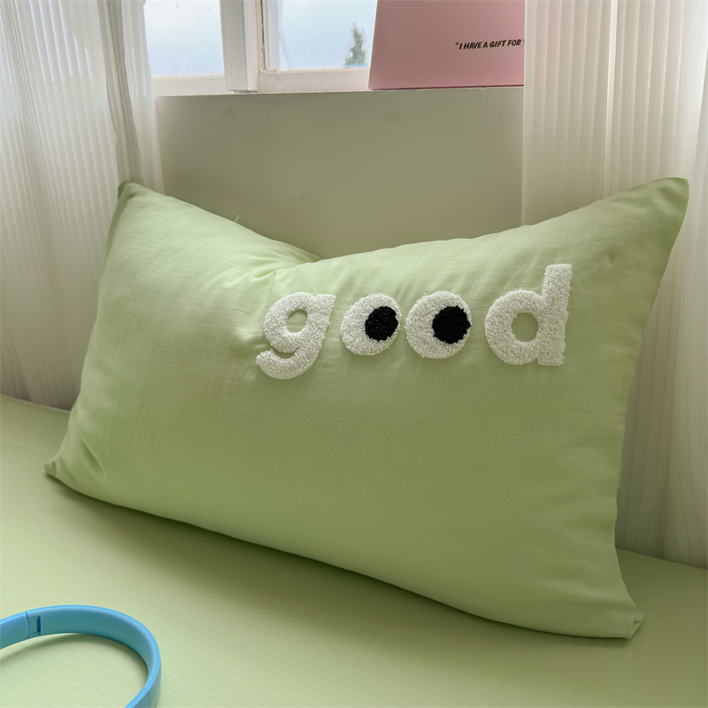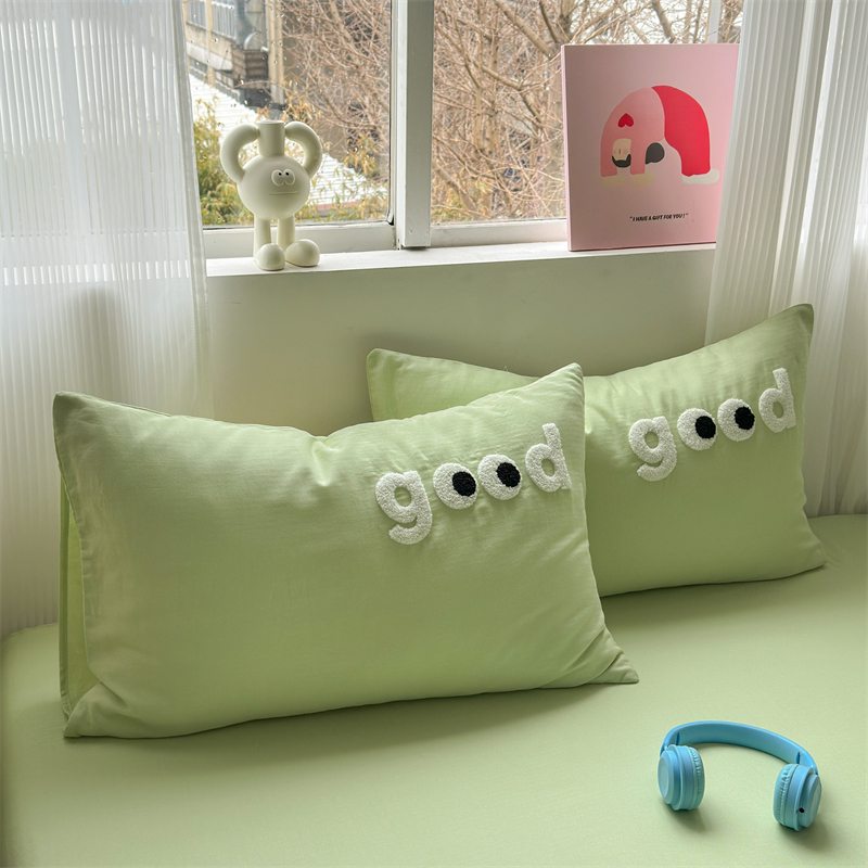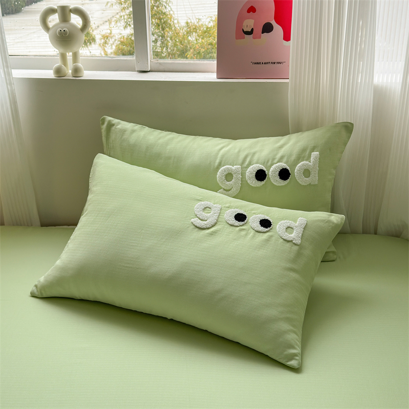 商品名称:丽涵 2025新款全棉纯棉大雁纹绣花单品枕套 good豆绿色