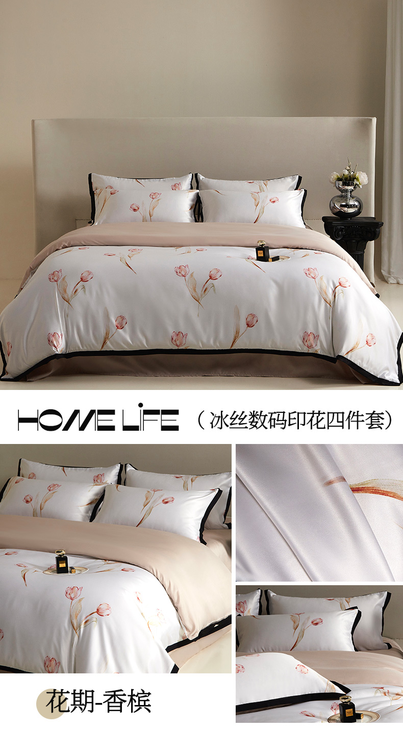 商品名称:优悦 2025新款冰丝数码印花四件套 花期-香槟
