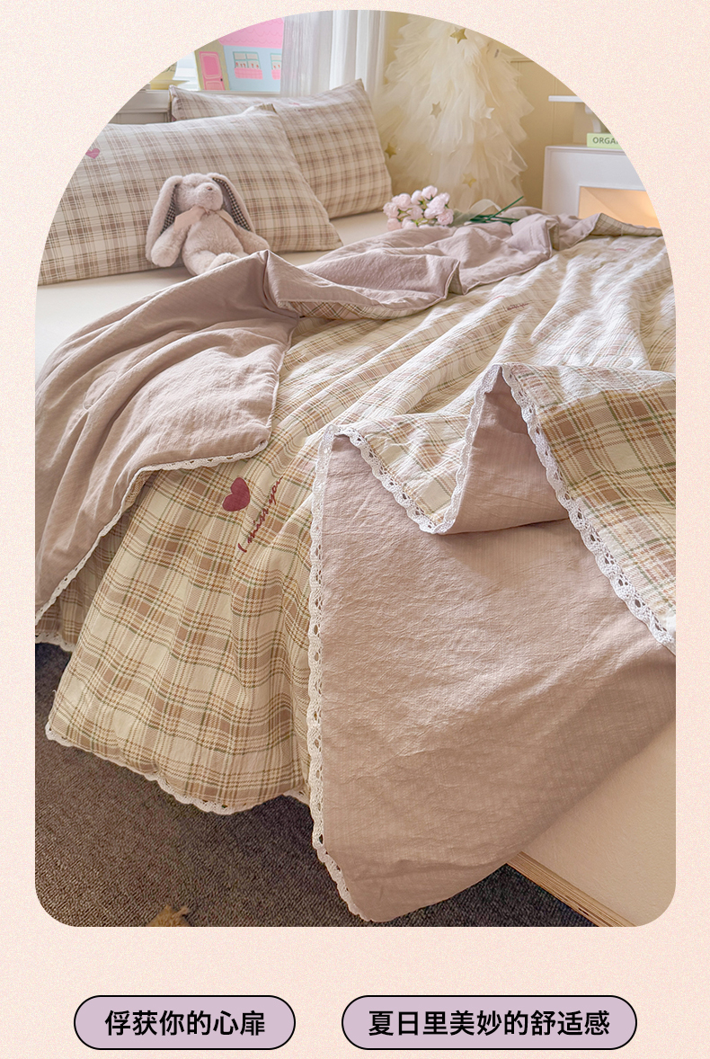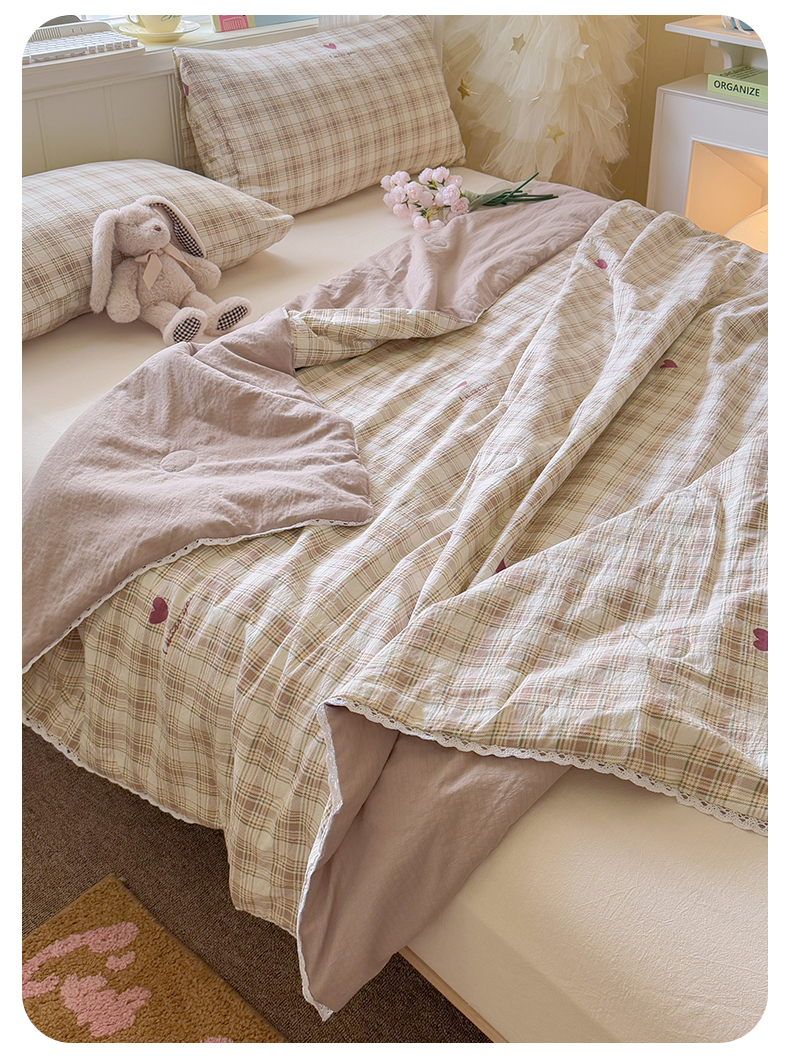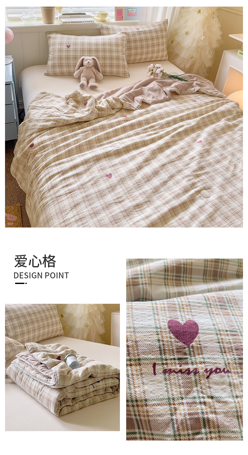 名兮家居 2025新款皱皱棉夏被夏凉被空调被 爱心格