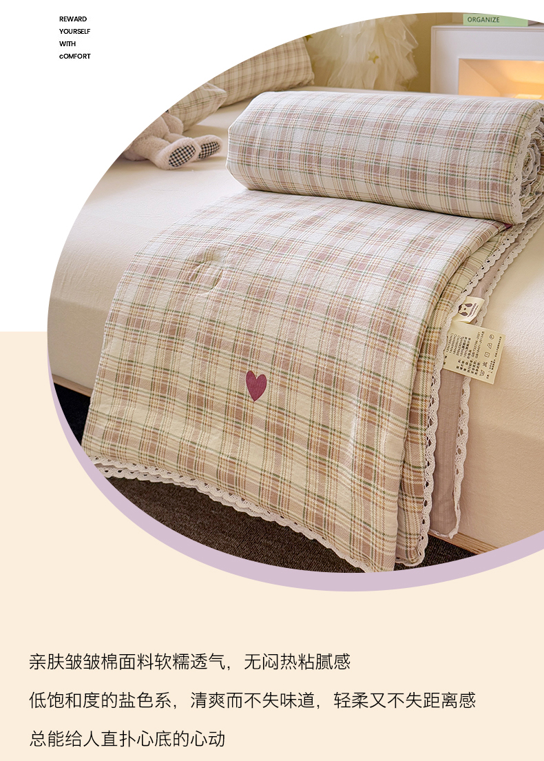 商品名称:名兮家居 2025新款皱皱棉夏被夏凉被空调被 爱心格