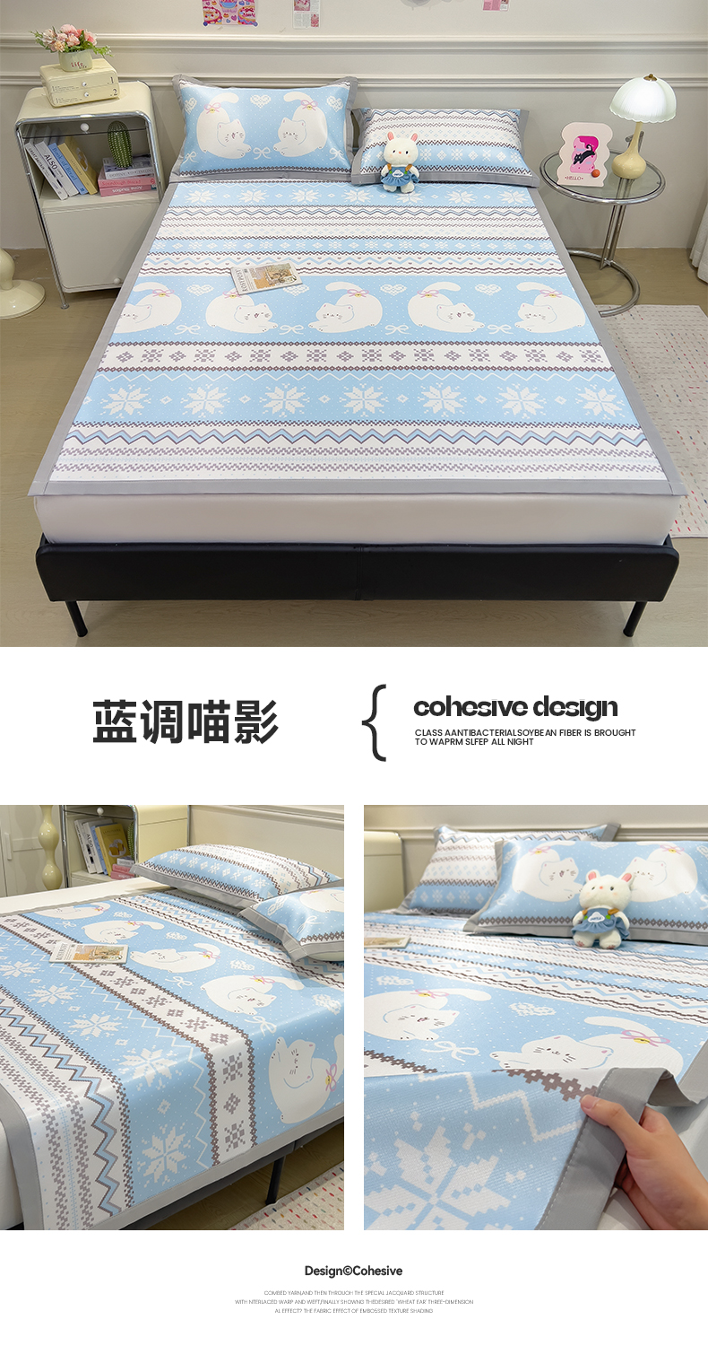 商品名称:摩妮卡 2025小清新数码冰丝席 碳光席三件套 蓝调喵影